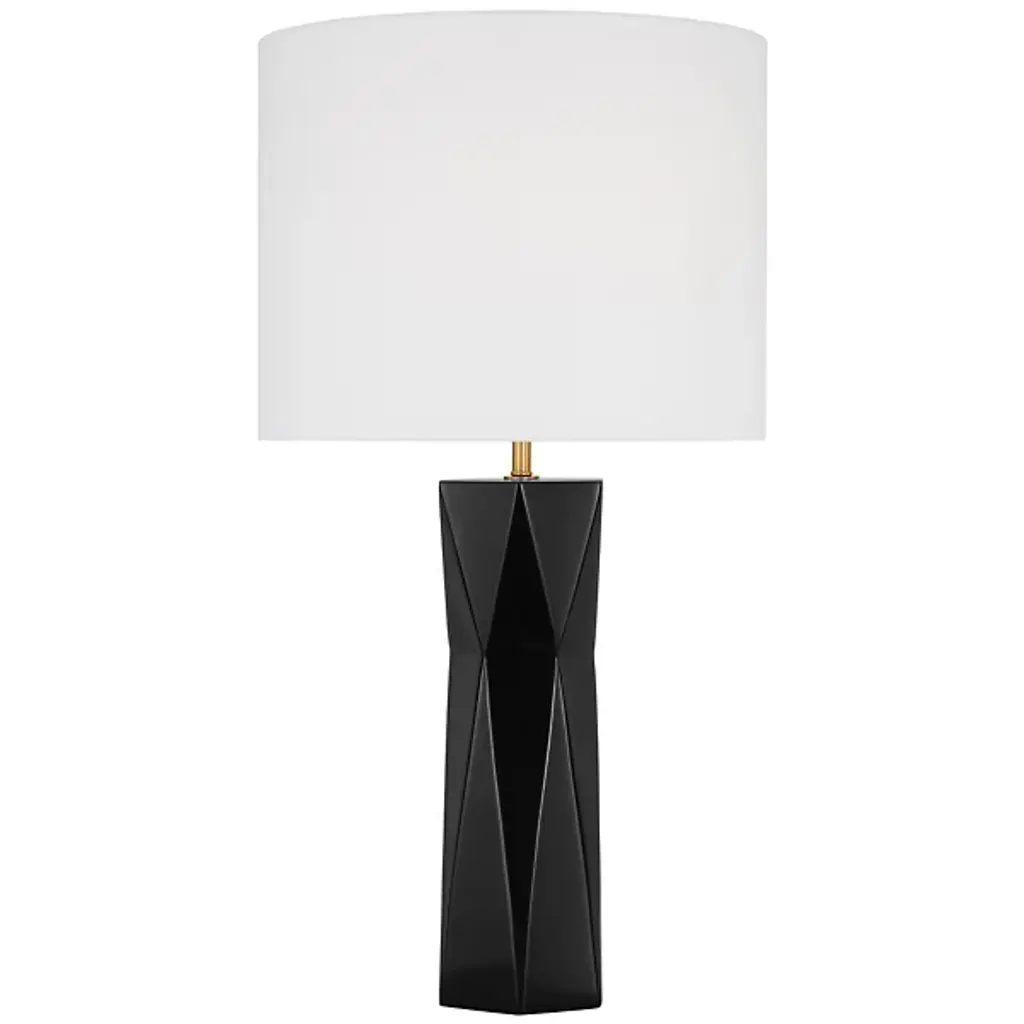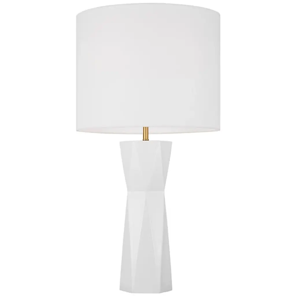Give your home décor a dashing modern note with the Fernwood Table Lamp by Visual Comfort Studio. This table Lamp is designed by Drew & Jonathan. Your table lamp is composed of durable resin to achieve a gripping, dynamic form. The eye is drawn to the subtle facets which accentuate the lamp’s mid-century modern look. Fernwood is crowned by a white linen drum shade for a classic touch. Within this shade rests an LED lamp, giving your environment a pleasant glow.
