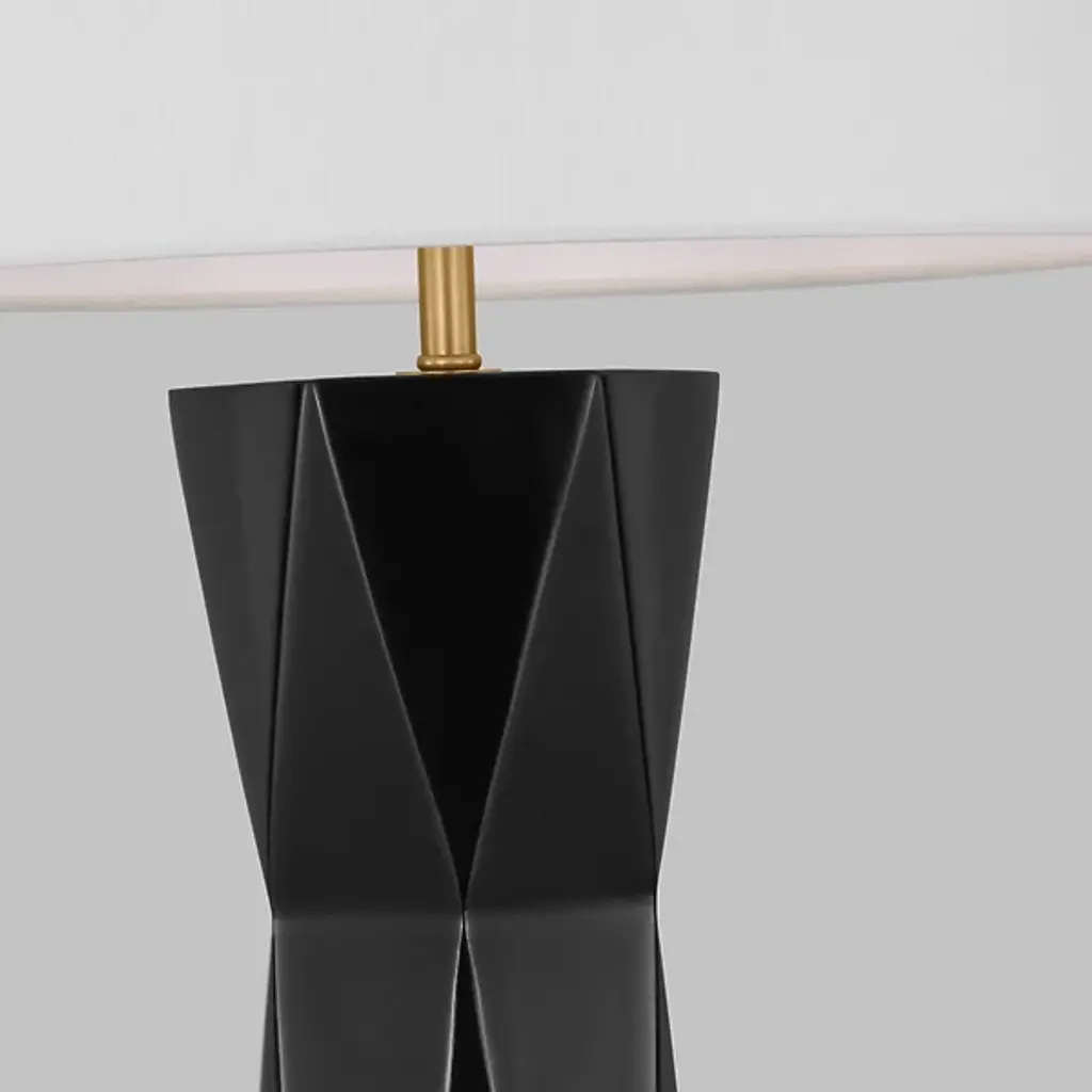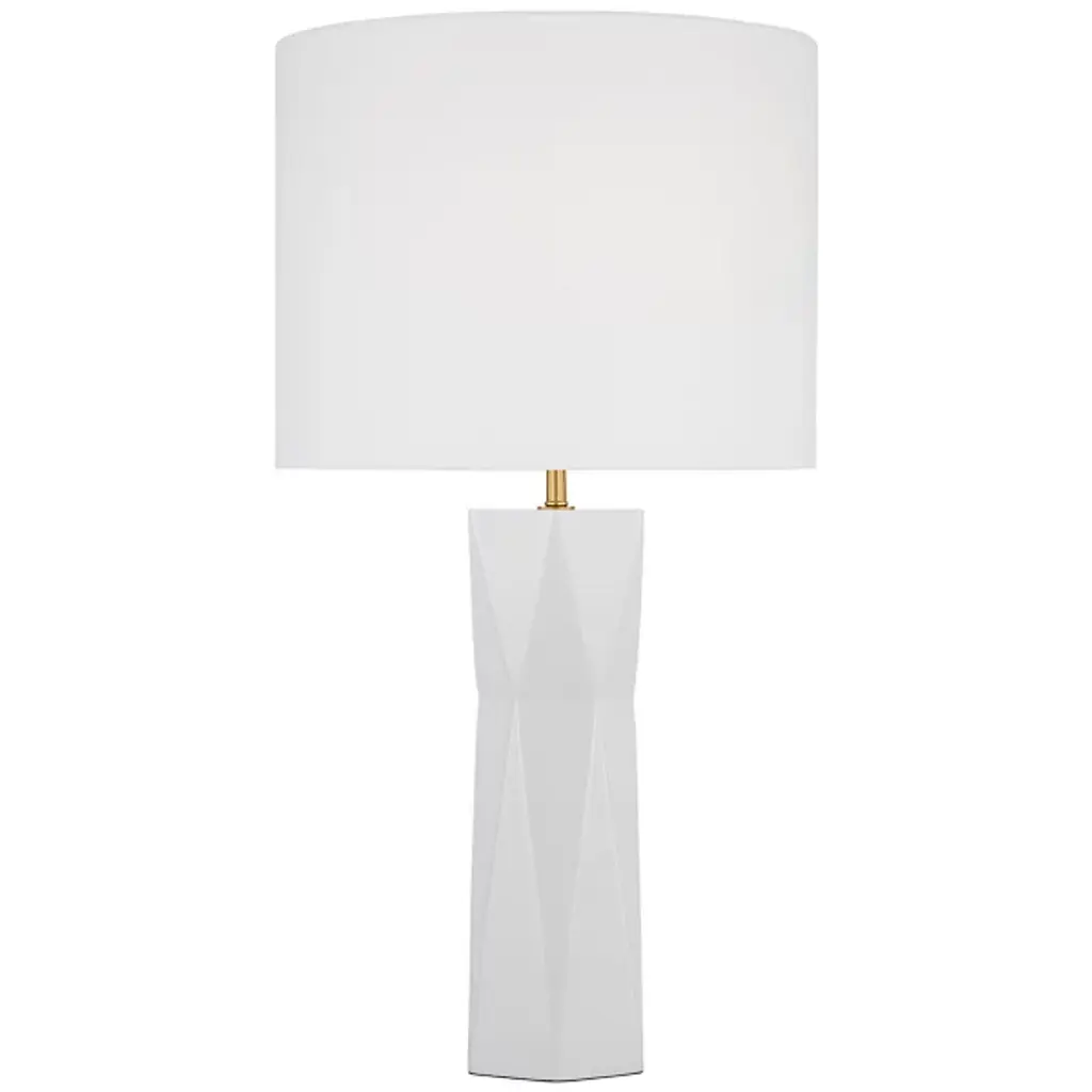 Give your home décor a dashing modern note with the Fernwood Table Lamp by Visual Comfort Studio. This table Lamp is designed by Drew & Jonathan. Your table lamp is composed of durable resin to achieve a gripping, dynamic form. The eye is drawn to the subtle facets which accentuate the lamp’s mid-century modern look. Fernwood is crowned by a white linen drum shade for a classic touch. Within this shade rests an LED lamp, giving your environment a pleasant glow.