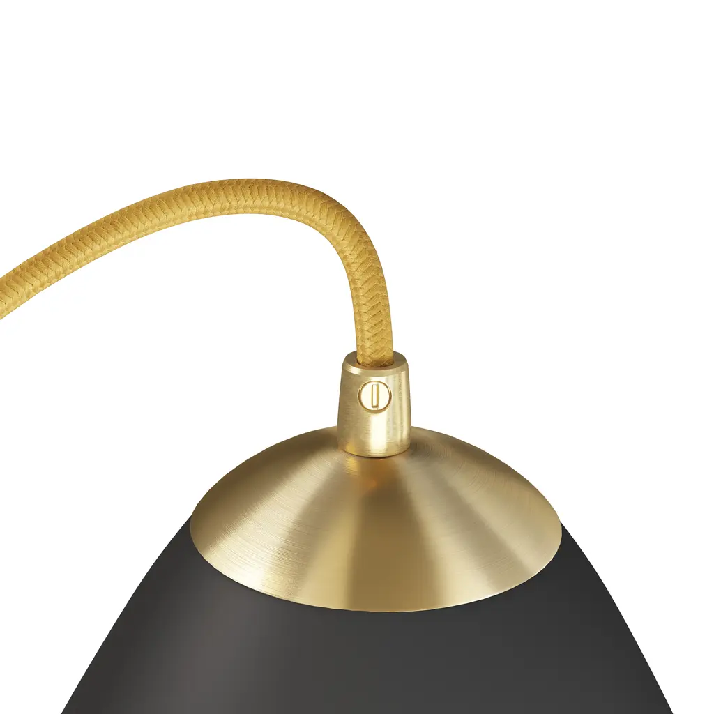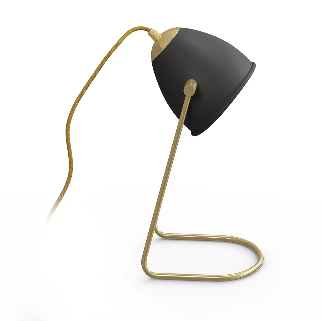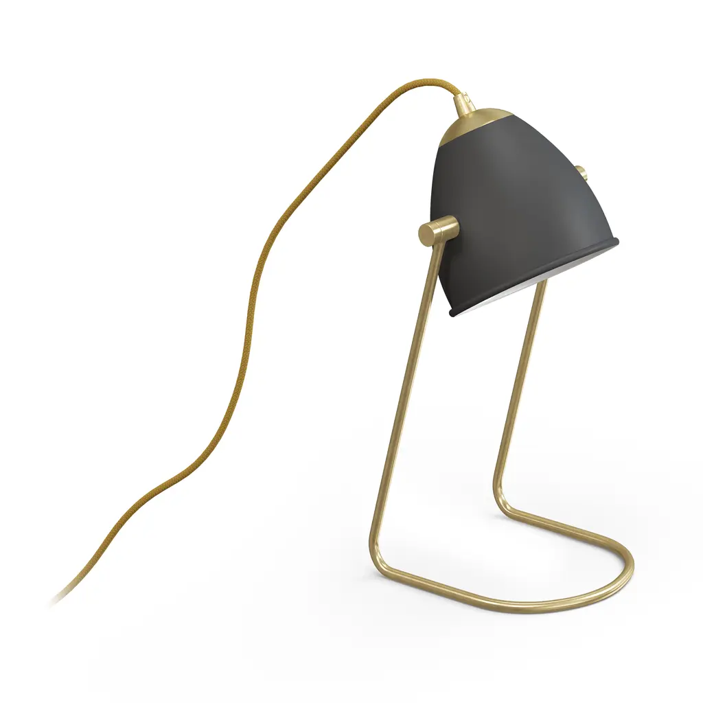 A table topping show stopper. The Fila table lamp features a powder-coated shade atop a spindly wire frame. Adjustable and with a small footprint, this lamp looks great on your bedside table, or on your desk as you burn the midnight oil.