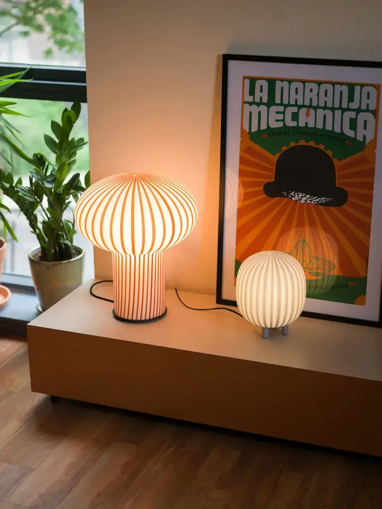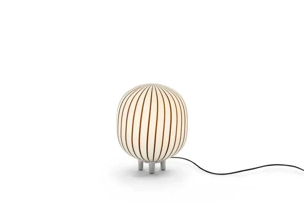 Filigrana T2 is a dimmable LED table lamp made of glass.Harnessing a technique that dates back to the 16th century, the Filigrana range of suspension lights is made from acid-etched mouth-blown glass. Using a method that has been passed down through generations, colored stripes of glass are rolled into the surface of each shade, creating a candy-cane pattern.Materials:Acid-etched mouth-blown glass, acrylic and powder-coated steel fixings, L200 cm fabric-covered cableCable Length: 200 cmElectrical Specifications:Universal voltageCertifications:CE, ETL, CCC