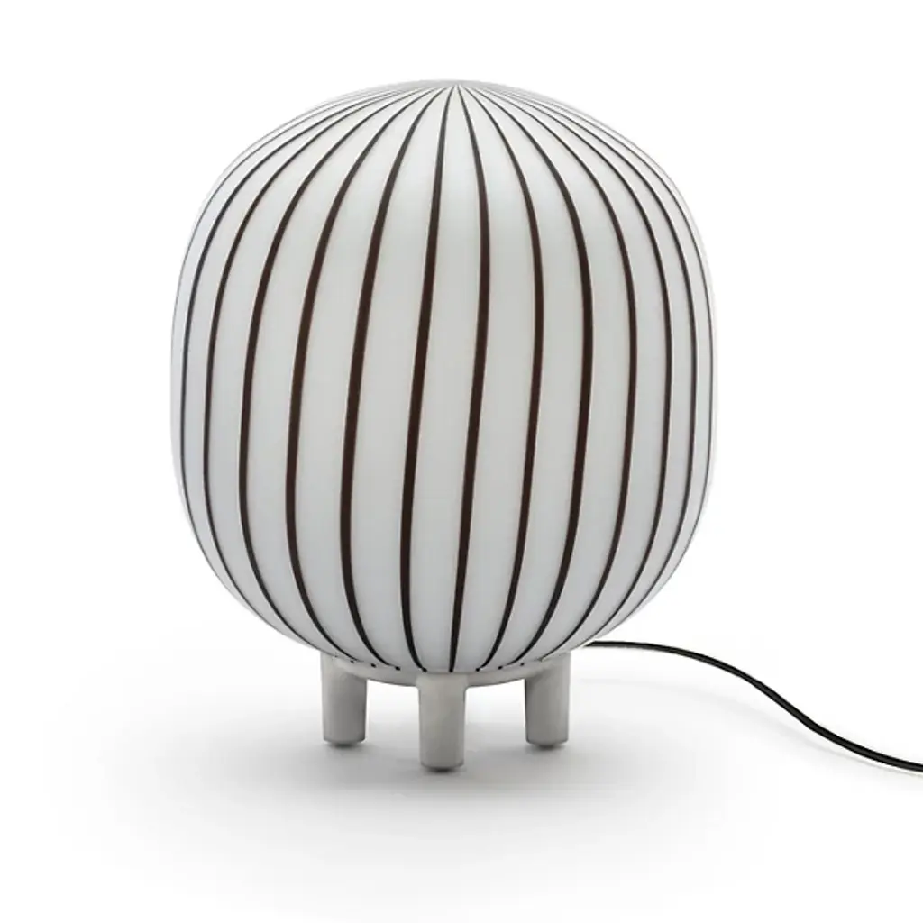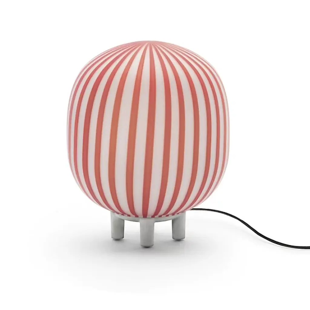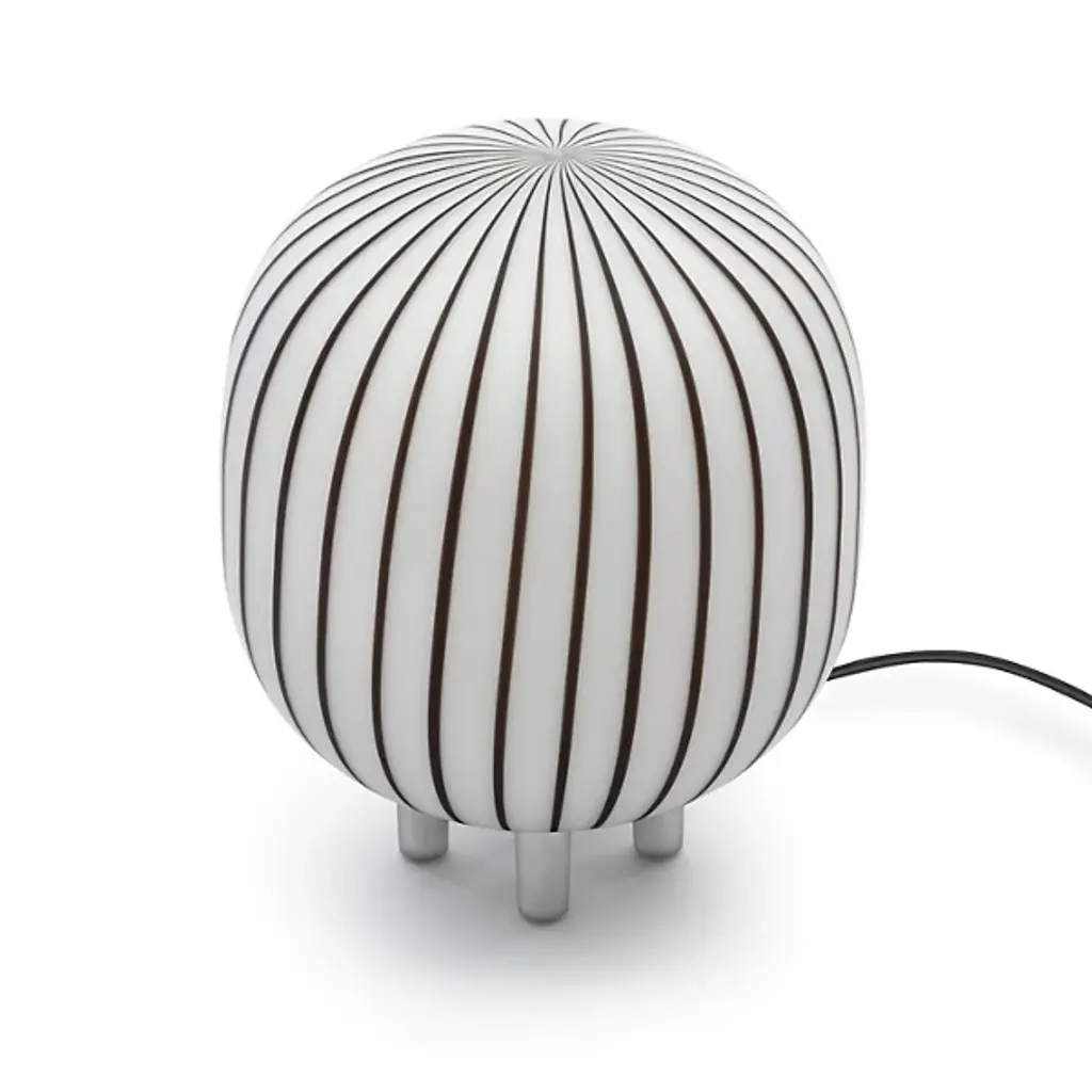 The Filigrana T2 Cylinder Table Lamp by Established & Sons adds a touch of charm and elegance to any space. Designed by Sebastian Wrong as a playful yet sophisticated "eye candy," it fits into both minimalist and maximalist interiors. Crafted using a 16th-century mouth-blown glass technique, the shade features manually rolled colored stripes, ensuring each piece is truly unique. An acid-etched finish diffuses light softly, creating a warm, inviting glow that enhances any room.