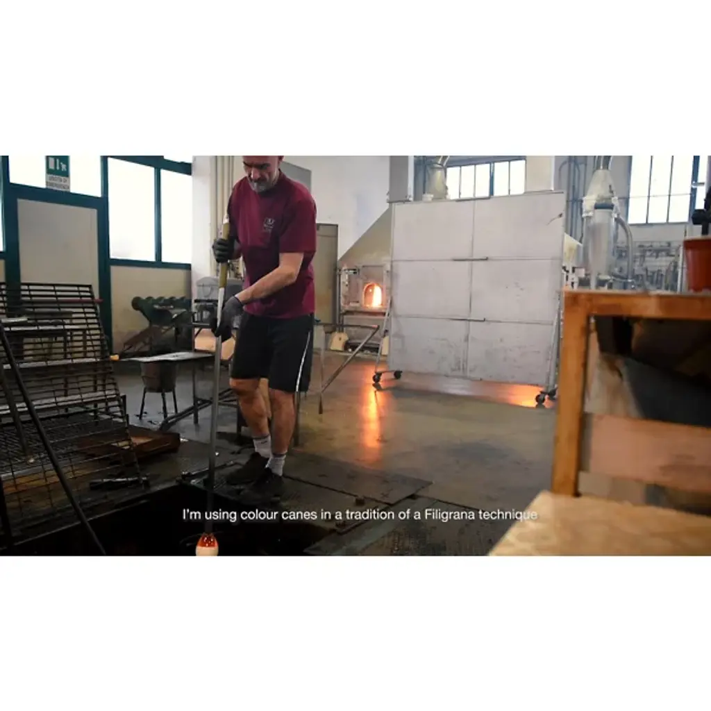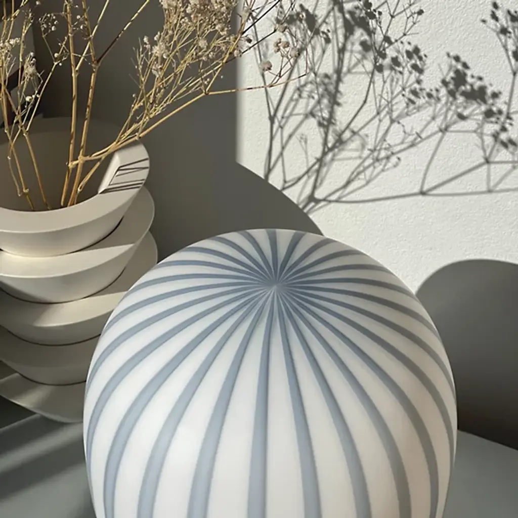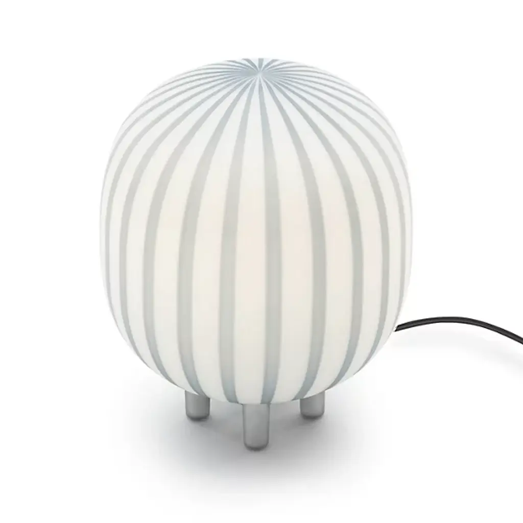 The Filigrana T2 Cylinder Table Lamp by Established & Sons adds a touch of charm and elegance to any space. Designed by Sebastian Wrong as a playful yet sophisticated "eye candy," it fits into both minimalist and maximalist interiors. Crafted using a 16th-century mouth-blown glass technique, the shade features manually rolled colored stripes, ensuring each piece is truly unique. An acid-etched finish diffuses light softly, creating a warm, inviting glow that enhances any room.