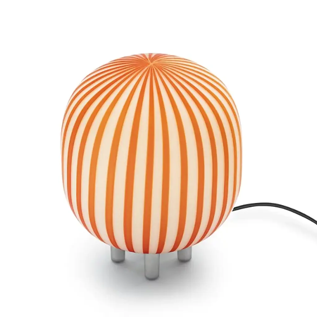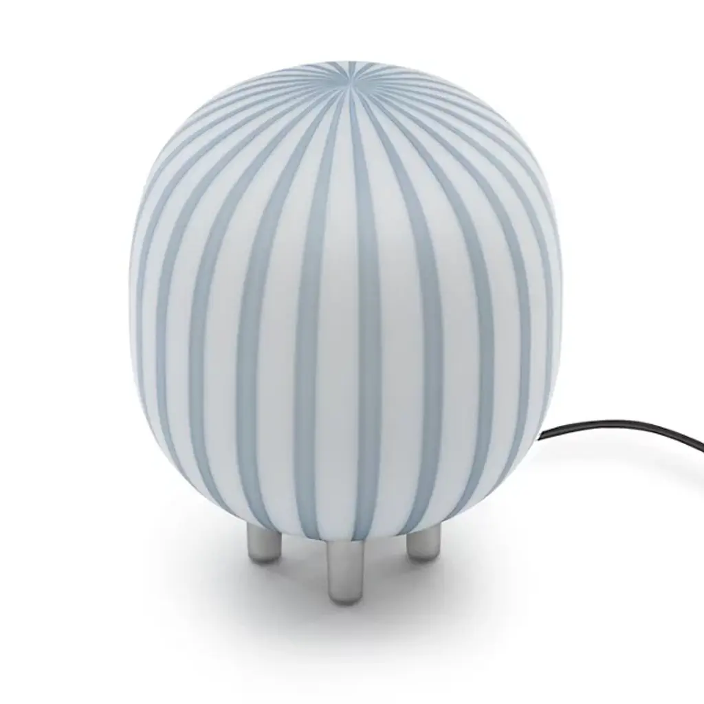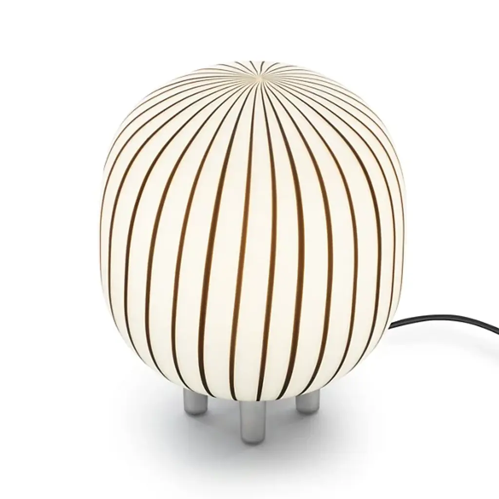 The Filigrana T2 Cylinder Table Lamp by Established & Sons adds a touch of charm and elegance to any space. Designed by Sebastian Wrong as a playful yet sophisticated "eye candy," it fits into both minimalist and maximalist interiors. Crafted using a 16th-century mouth-blown glass technique, the shade features manually rolled colored stripes, ensuring each piece is truly unique. An acid-etched finish diffuses light softly, creating a warm, inviting glow that enhances any room.