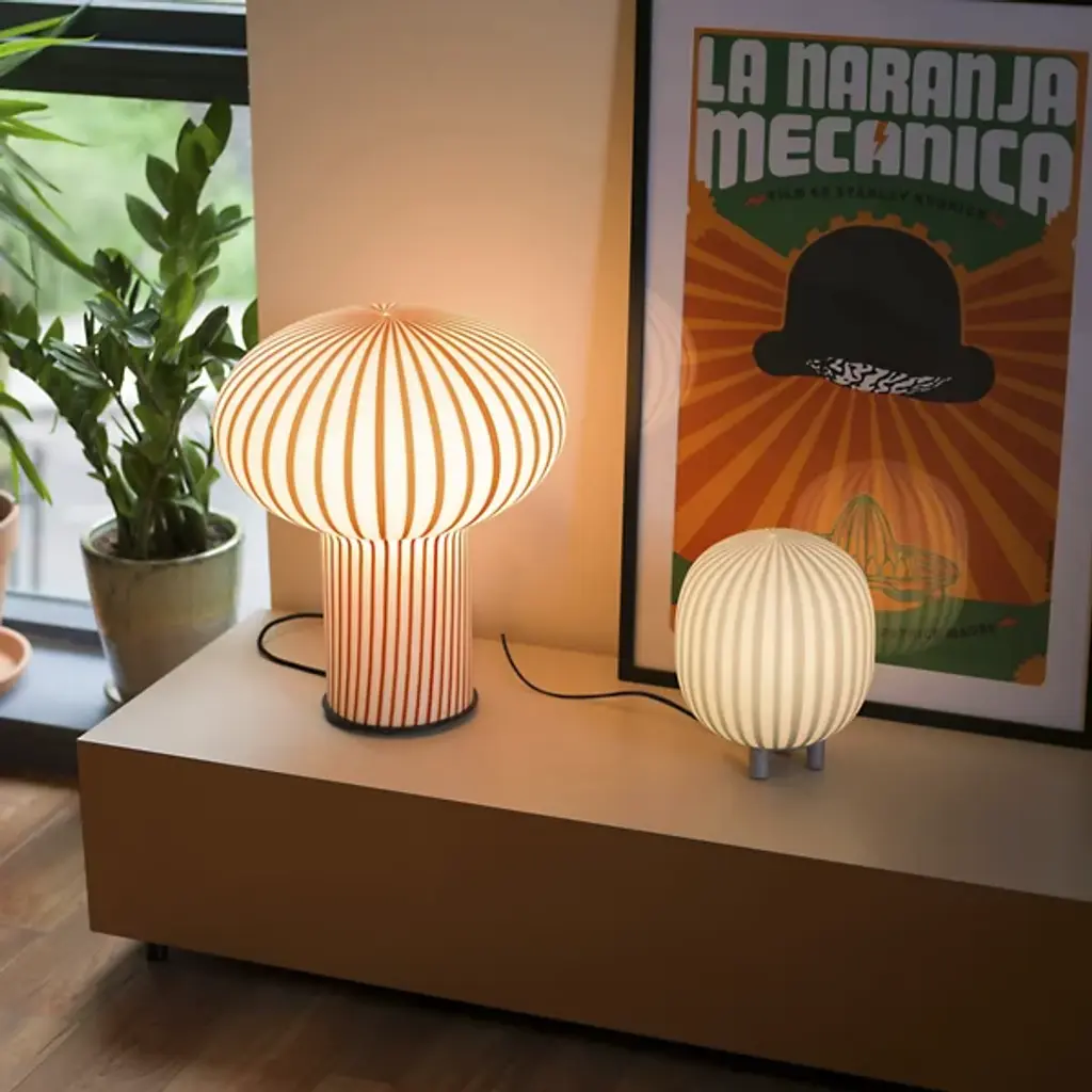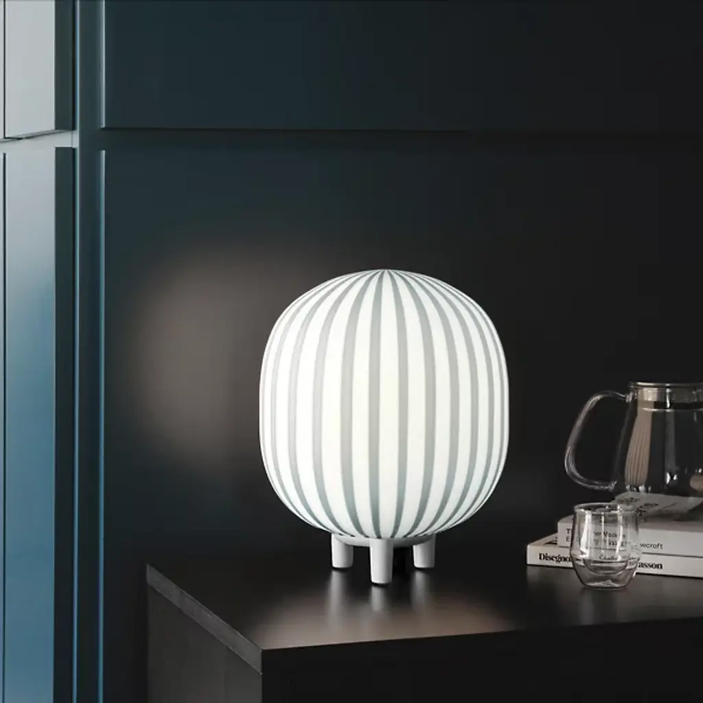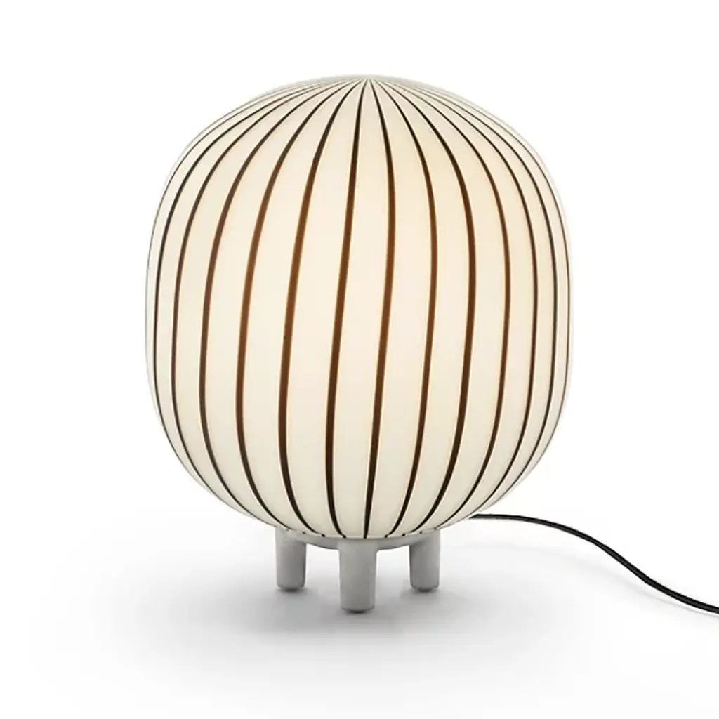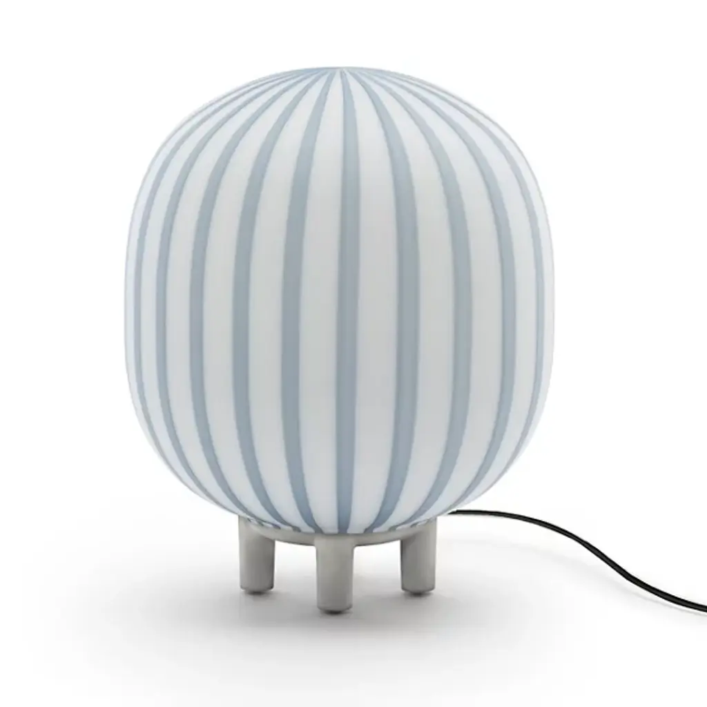 The Filigrana T2 Cylinder Table Lamp by Established & Sons adds a touch of charm and elegance to any space. Designed by Sebastian Wrong as a playful yet sophisticated "eye candy," it fits into both minimalist and maximalist interiors. Crafted using a 16th-century mouth-blown glass technique, the shade features manually rolled colored stripes, ensuring each piece is truly unique. An acid-etched finish diffuses light softly, creating a warm, inviting glow that enhances any room.