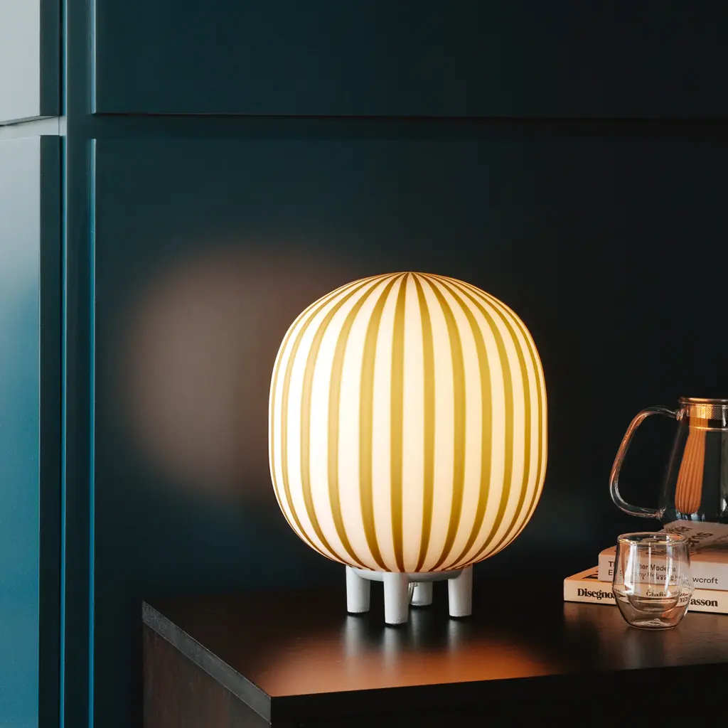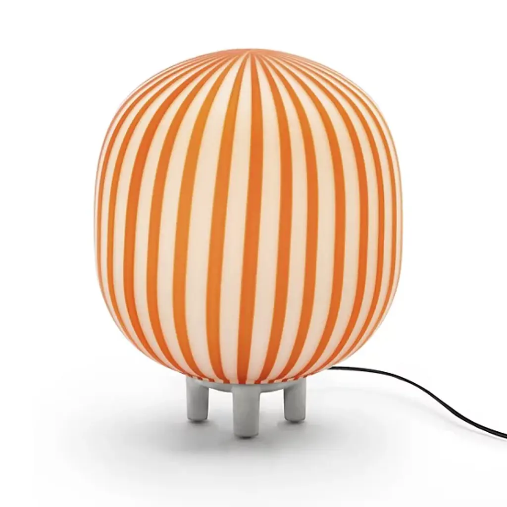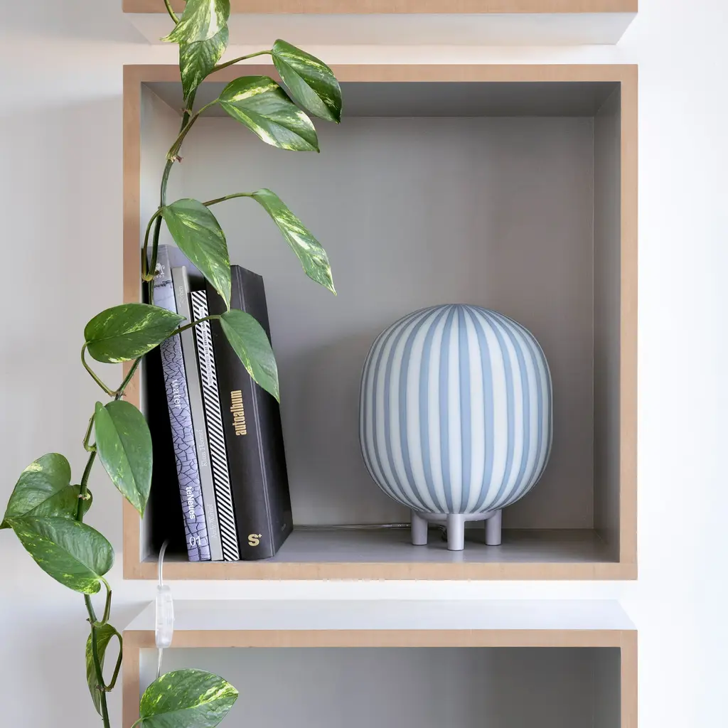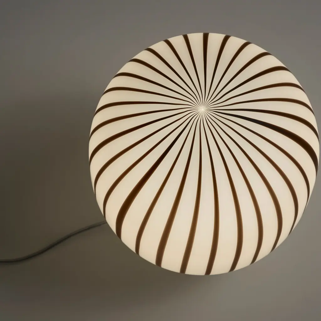 A beguiling table lamp joins Established & Sons’ Filigrana range, handmade from glorious mouth-blown Venetian glass. Designer Sebastian Wrong harnesses a technique that dates back to the 16th century in which colored bands of glass are rolled into the surface of each opalescent shade, creating a candy-stripe pattern. Available in 4 magical hues, the glass globe is acid-etched to create a wonderfully soft and diffused illumination.
