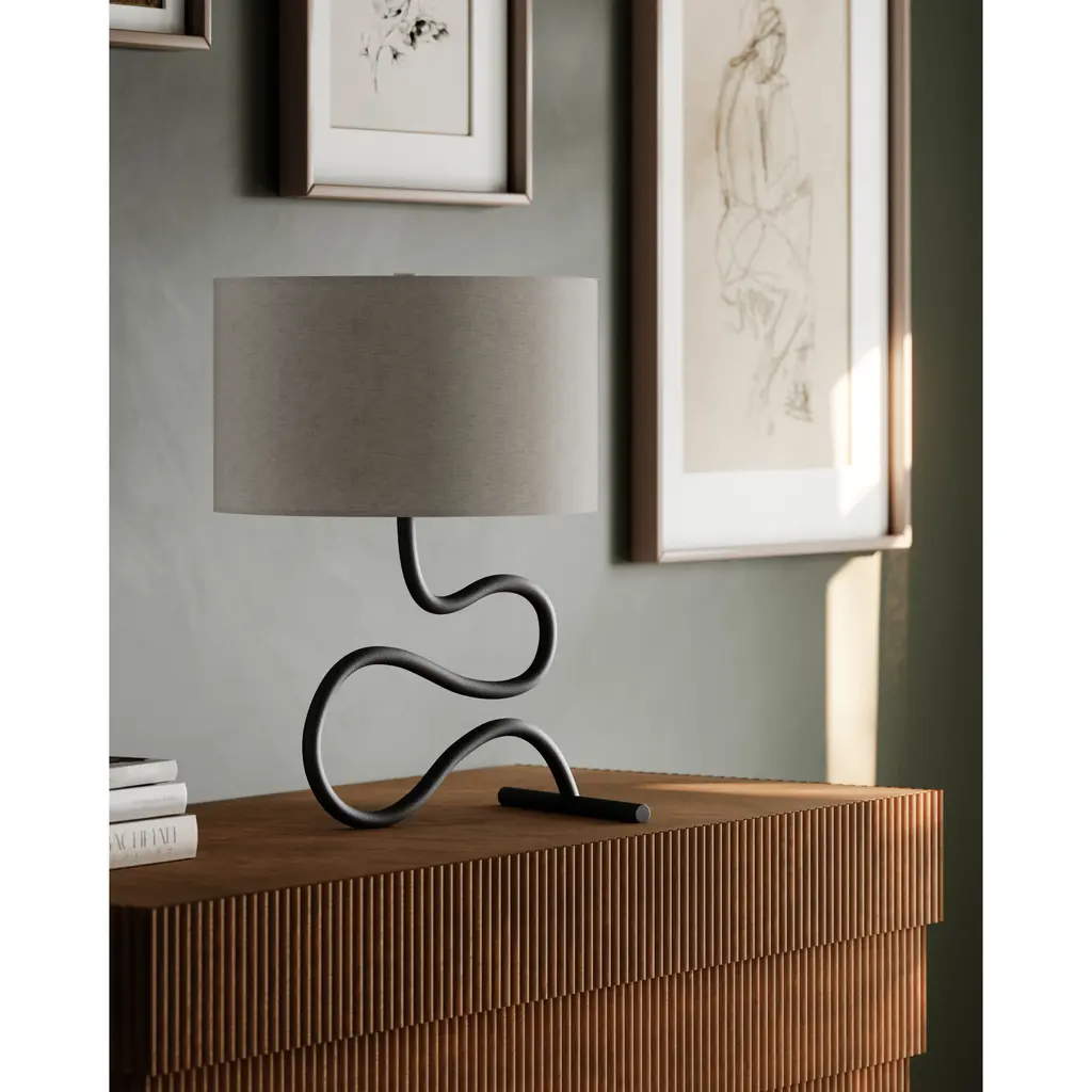 Sculptural and sophisticated, Alameda's forged iron body flows from its weighted metal base, bending and intertwining into a lightweight, tapered paper shade. A beautiful juxtaposition of material and form. Available as a floor lamp, table lamp, and portable wall sconce, Alameda plays with shape and negative space for a chic addition to a reading nook or bedside table.