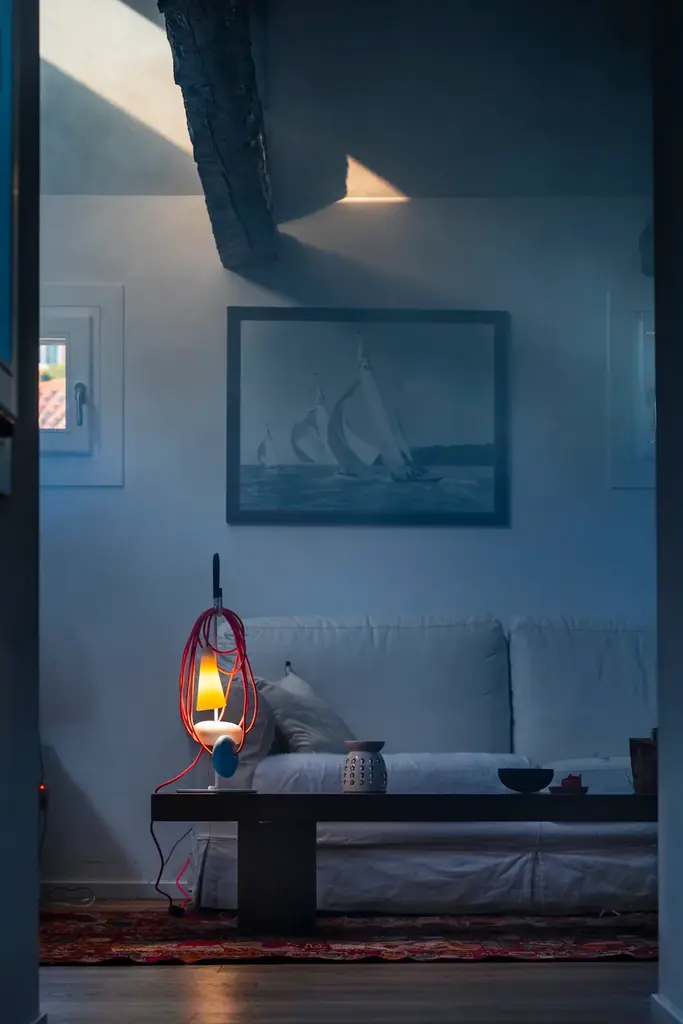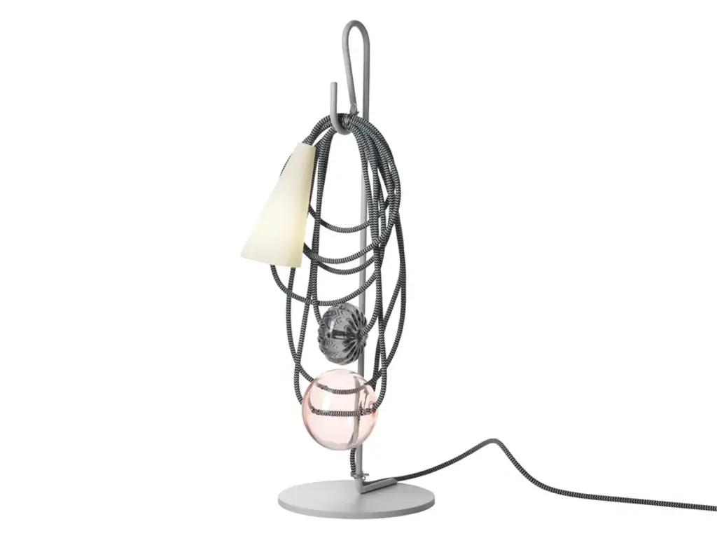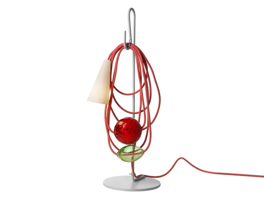 Filo is a table lamp made of porcelain, textile cable, blown glass and varnished metal.LIGHT SOURCE220 / 240 VLED retrofit included4W G93000 K 400 lm CRI>80IP 20Not dimmableAn object generated by emphasis on the individual parts of a lamp: light source, decoration and an electrical wire, in a simplified vocabulary. The cable establishes an unexpected dialogue with the glass and the diffuser. Selected colours offer multiple identities.