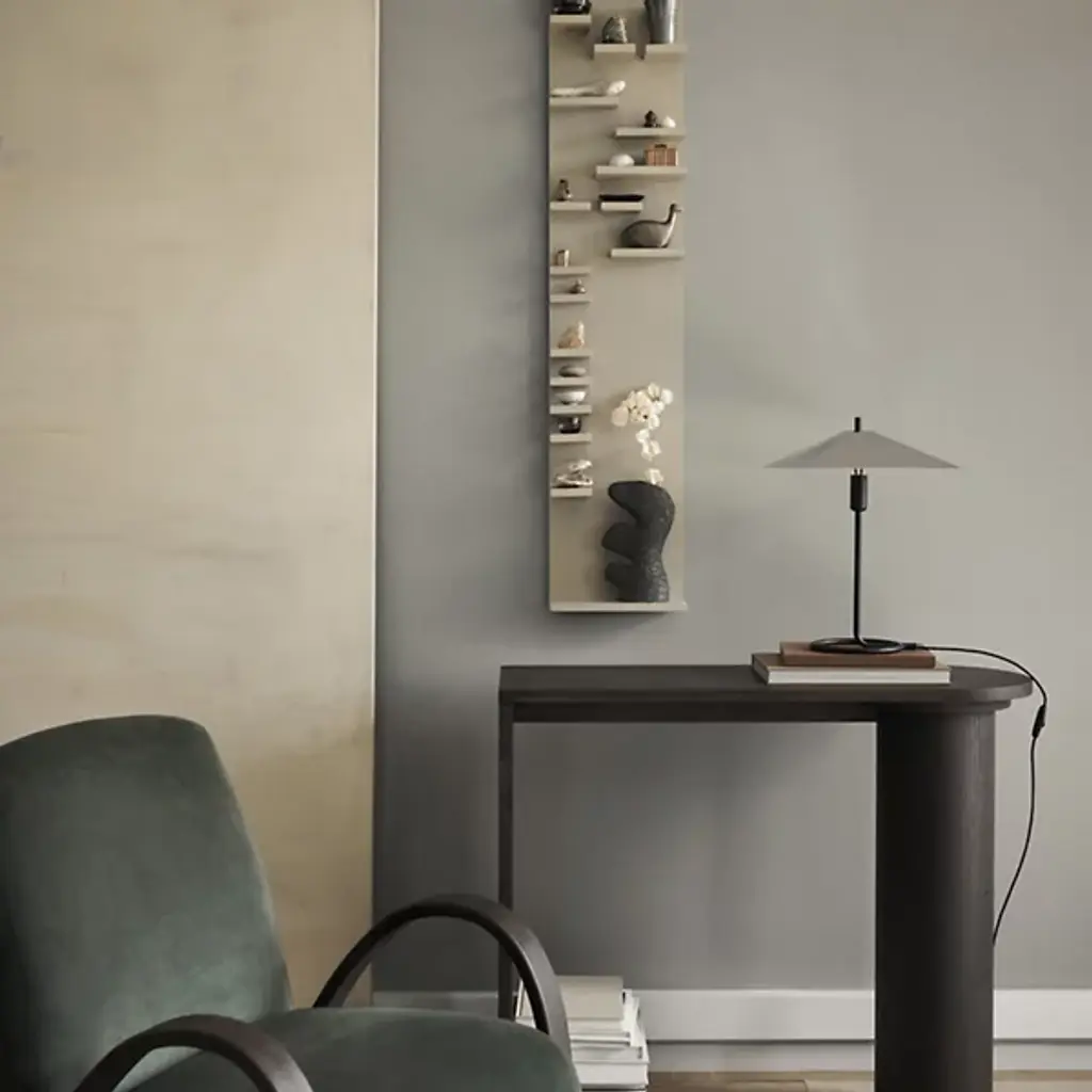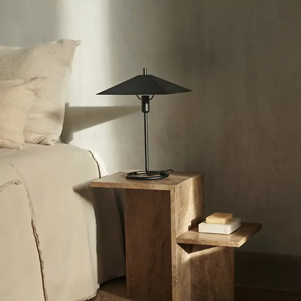 The Filo Square Table Lamp from ferm LIVING is defined by its streamlined, sloped shade. The shade elegantly tapers as it ascends, crowning an ultra-slender framework that forms a ring at the base to keep this piece properly balanced. It is illuminated by a candelabra-base LED that can be turned on and off via a cord switch for your convenience. Place this fixture on end tables or nightstands to bring contemporary design to your space.