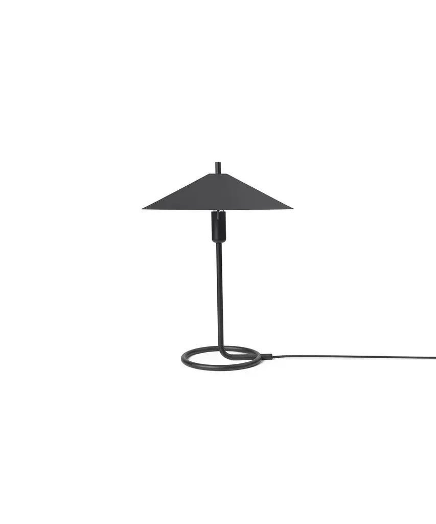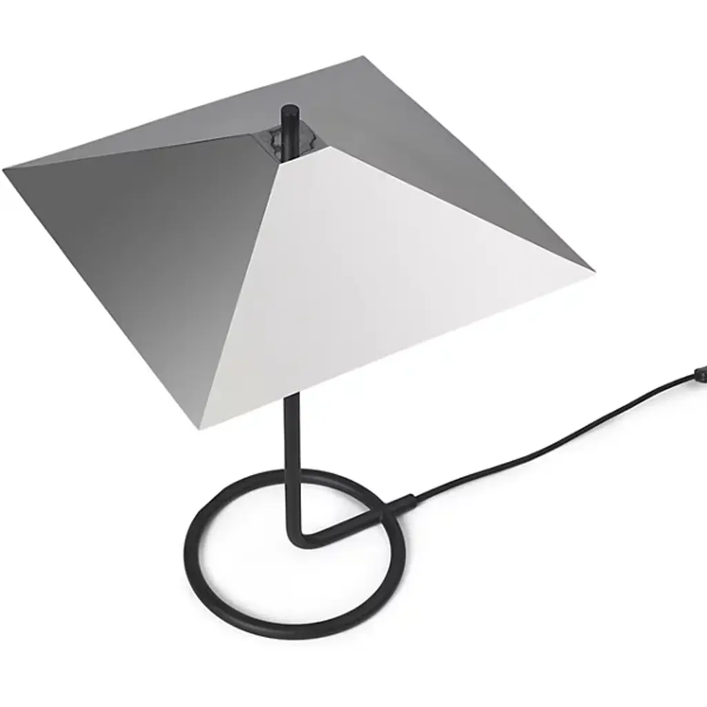 The Filo Square Table Lamp from ferm LIVING is defined by its streamlined, sloped shade. The shade elegantly tapers as it ascends, crowning an ultra-slender framework that forms a ring at the base to keep this piece properly balanced. It is illuminated by a candelabra-base LED that can be turned on and off via a cord switch for your convenience. Place this fixture on end tables or nightstands to bring contemporary design to your space.