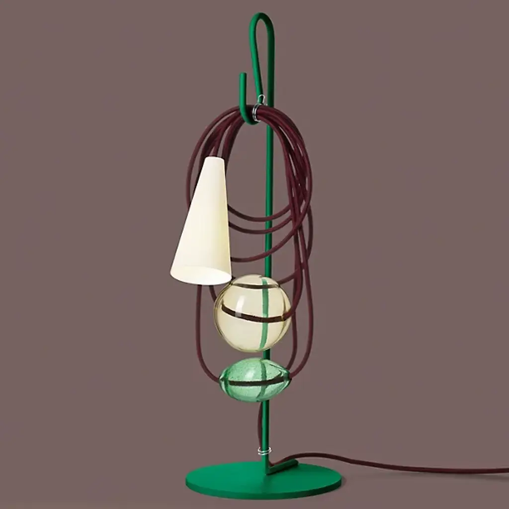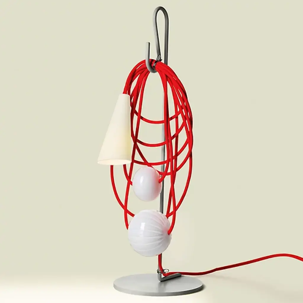 Add a modern and whimsical touch to numerous productive spaces with the Filo Table Lamp by Foscarini. Constructed with Murano Glass figures, an Off-White conical Porcelain shade, Fabric covered cables, and a Coated Metal Fixture, this adjustable table lamp makes for a great addition to home offices, art studios, and work stations. When illuminated, an effective task light is cast from an LED light source.