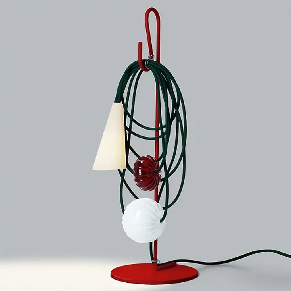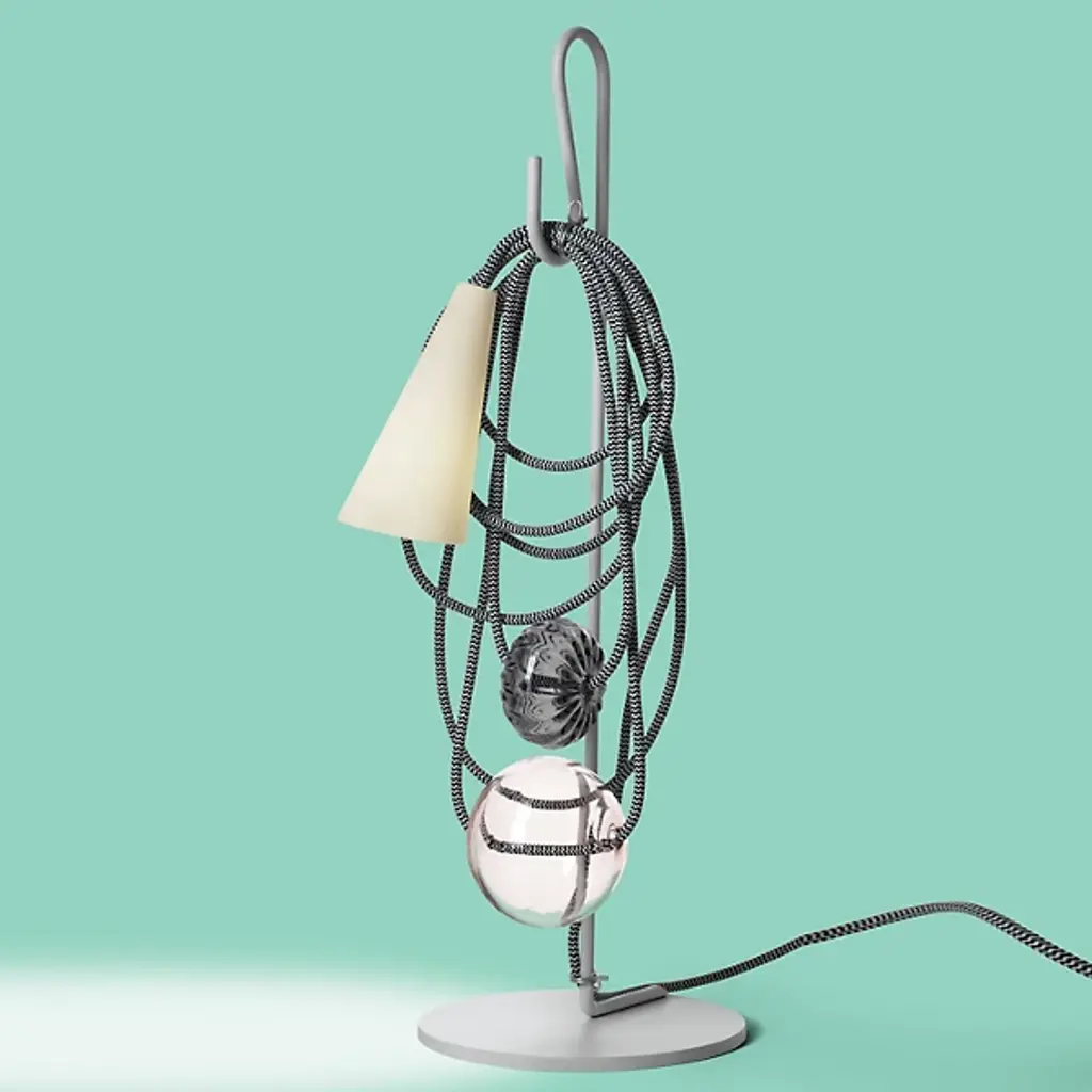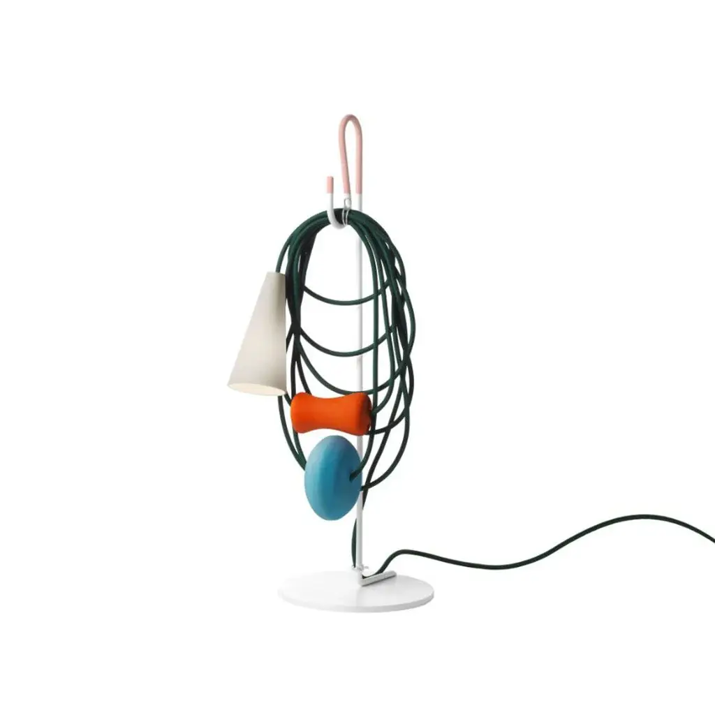 Add a modern and whimsical touch to numerous productive spaces with the Filo Table Lamp by Foscarini. Constructed with Murano Glass figures, an Off-White conical Porcelain shade, Fabric covered cables, and a Coated Metal Fixture, this adjustable table lamp makes for a great addition to home offices, art studios, and work stations. When illuminated, an effective task light is cast from an LED light source.