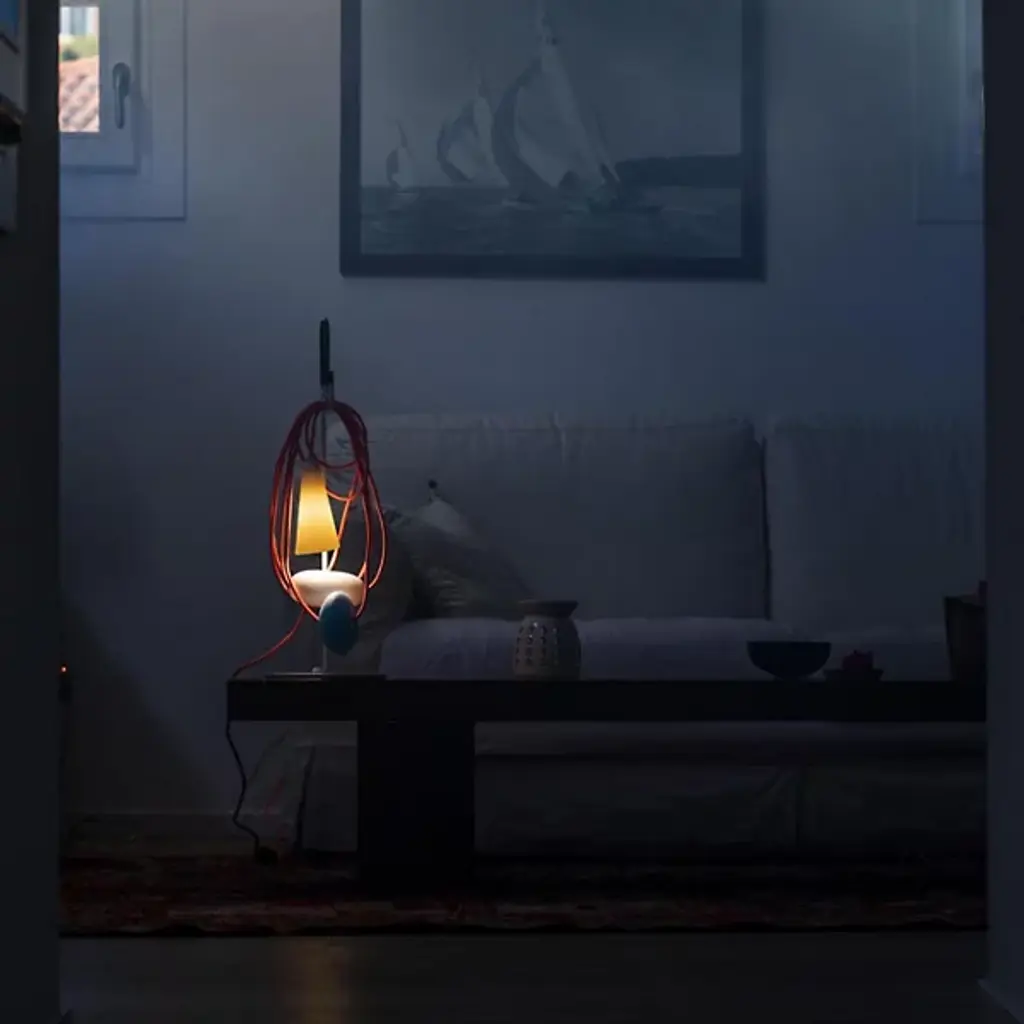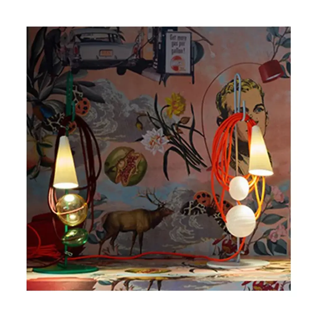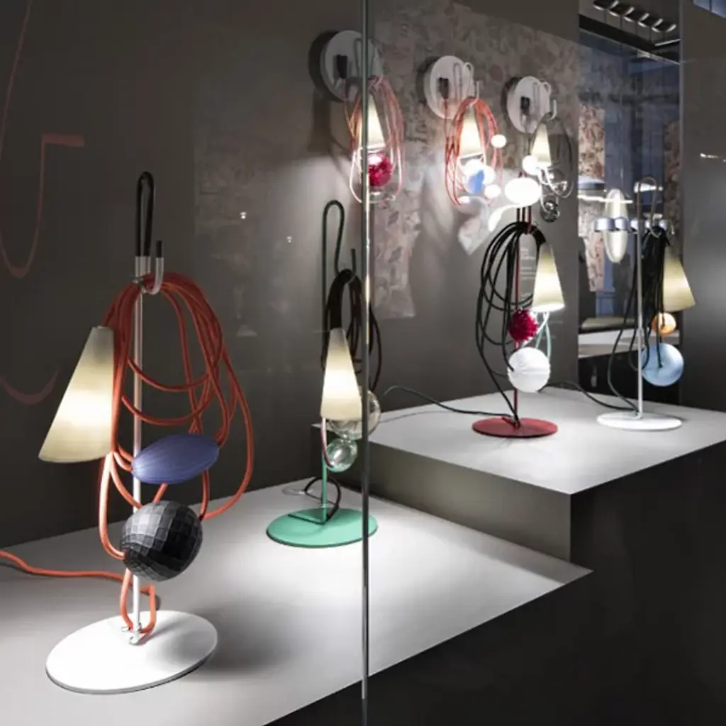 Add a modern and whimsical touch to numerous productive spaces with the Filo Table Lamp by Foscarini. Constructed with Murano Glass figures, an Off-White conical Porcelain shade, Fabric covered cables, and a Coated Metal Fixture, this adjustable table lamp makes for a great addition to home offices, art studios, and work stations. When illuminated, an effective task light is cast from an LED light source.