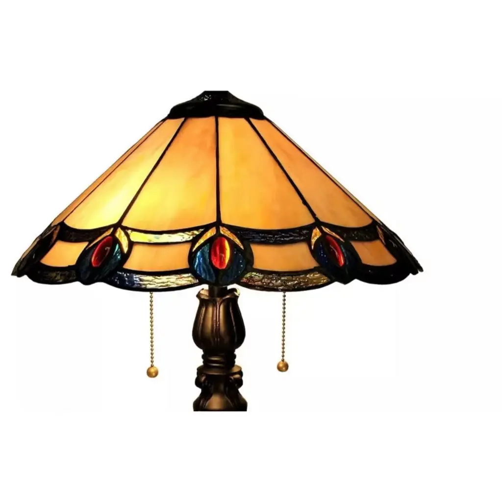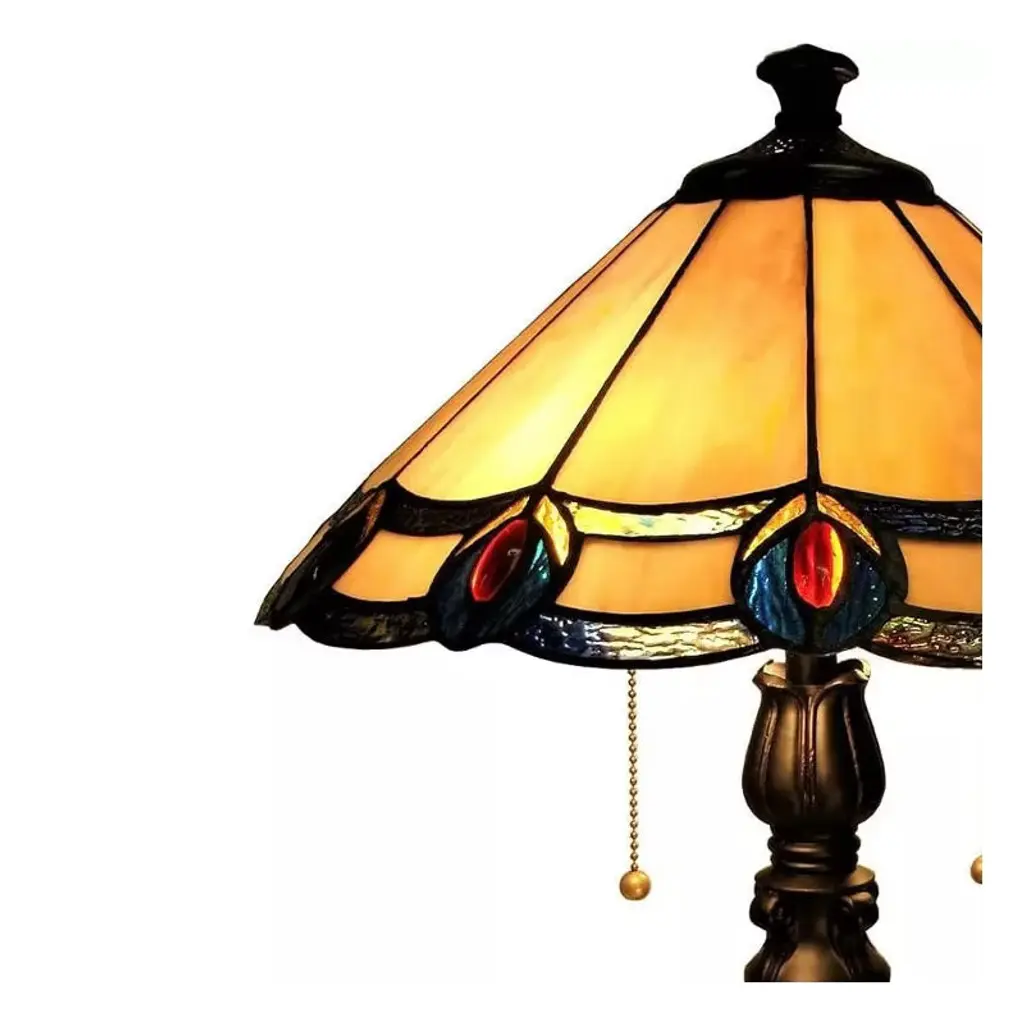 The Fine Art Lighting Z1679 Peacock Feathers Stained Glass Table Lamp is a striking decorative piece that combines the elegance of Tiffany-style stained glass with the rich, vibrant hues of a peacock feather design. Key Features:Handcrafted Stained Glass Shade – Features a stunning peacock feather motif, with individually cut and soldered glass pieces in shades of blue, green, gold, and purple, mimicking the iridescence of real peacock feathers.Art Nouveau & Tiffany Style Fusion – Inspired by classic Art Nouveau aesthetics, this lamp embodies the graceful curves and nature-inspired designs of the era.Warm & Vibrant Lighting – The multicolored stained glass softly diffuses light, creating a warm and enchanting ambiance.Elegant Bronze-Finish Base – A sturdy and ornate metal base with an antique bronze finish, complementing the peacock-themed shade.Perfect Size for Decorative Use – Ideal for living room end tables, nightstands, offices, or entryway consoles, adding a sophisticated artistic touch.Bulb Compatibility – Uses E26 bulbs (LED, CFL, or incandescent), allowing for energy-efficient lighting options.This Peacock Feathers Stained Glass Table Lamp is a stunning statement piece, perfect for those who appreciate luxurious, nature-inspired décor and timeless stained glass artistry.
