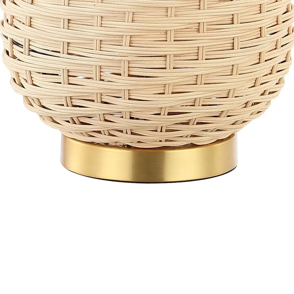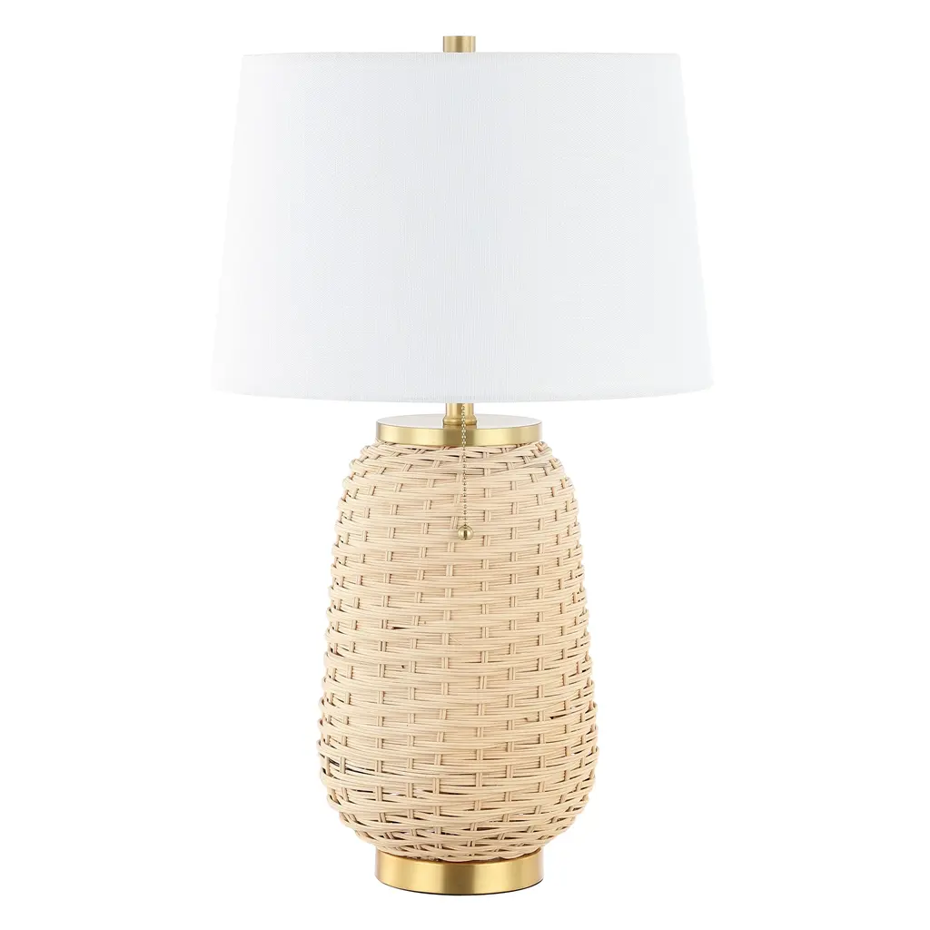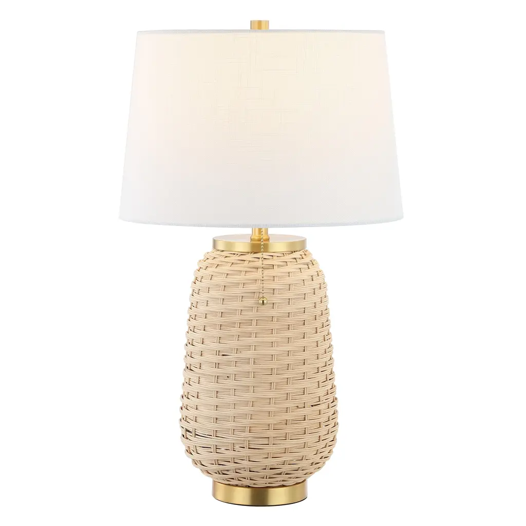 Finn 25" Rustic Bohemian Iron/rattan Led Table Lamp With Pull-Chain, By Jonathan Y - Light Brown
