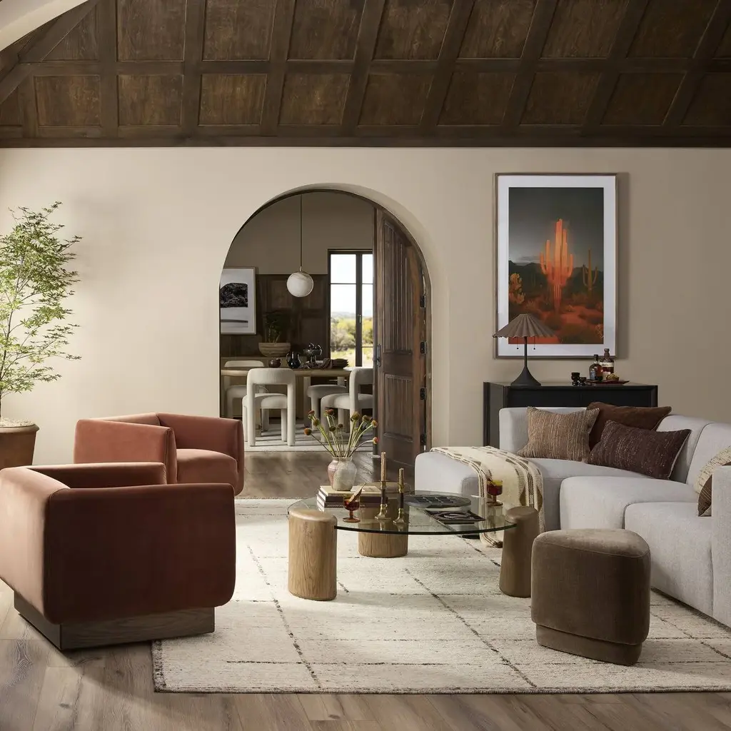 With a touch of Baroque-era drama, the Fiorella Table Lamp from Four Hands unites rich textures for a beautiful glow. Crafted in India, this lamp is defined by its oversized scalloped shade, featuring a canvas exterior and a warm, antiqued brass interior. The metallic lining reflects a soft, inviting ambiance, while classic wrought iron pull chains control each bulb individually. A sophisticated and sculptural piece, it brings a sense of timeless, moody elegance to any side table or console. Highlights: