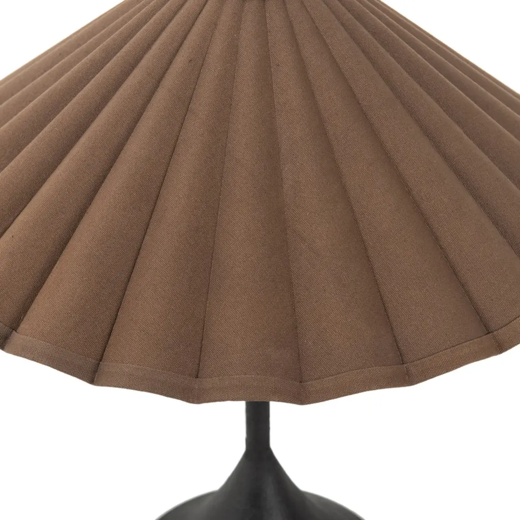 With a touch of Baroque-era drama, the Fiorella Table Lamp from Four Hands unites rich textures for a beautiful glow. Crafted in India, this lamp is defined by its oversized scalloped shade, featuring a canvas exterior and a warm, antiqued brass interior. The metallic lining reflects a soft, inviting ambiance, while classic wrought iron pull chains control each bulb individually. A sophisticated and sculptural piece, it brings a sense of timeless, moody elegance to any side table or console. Highlights: