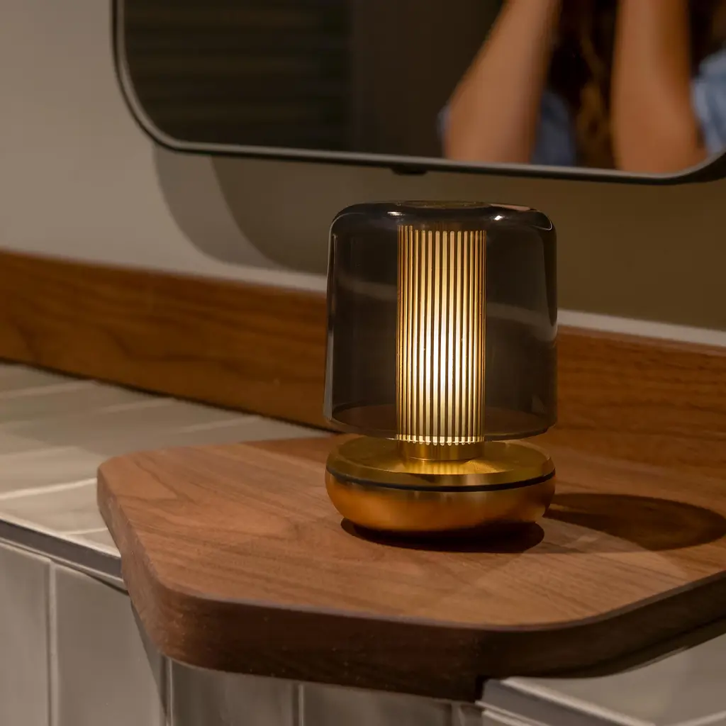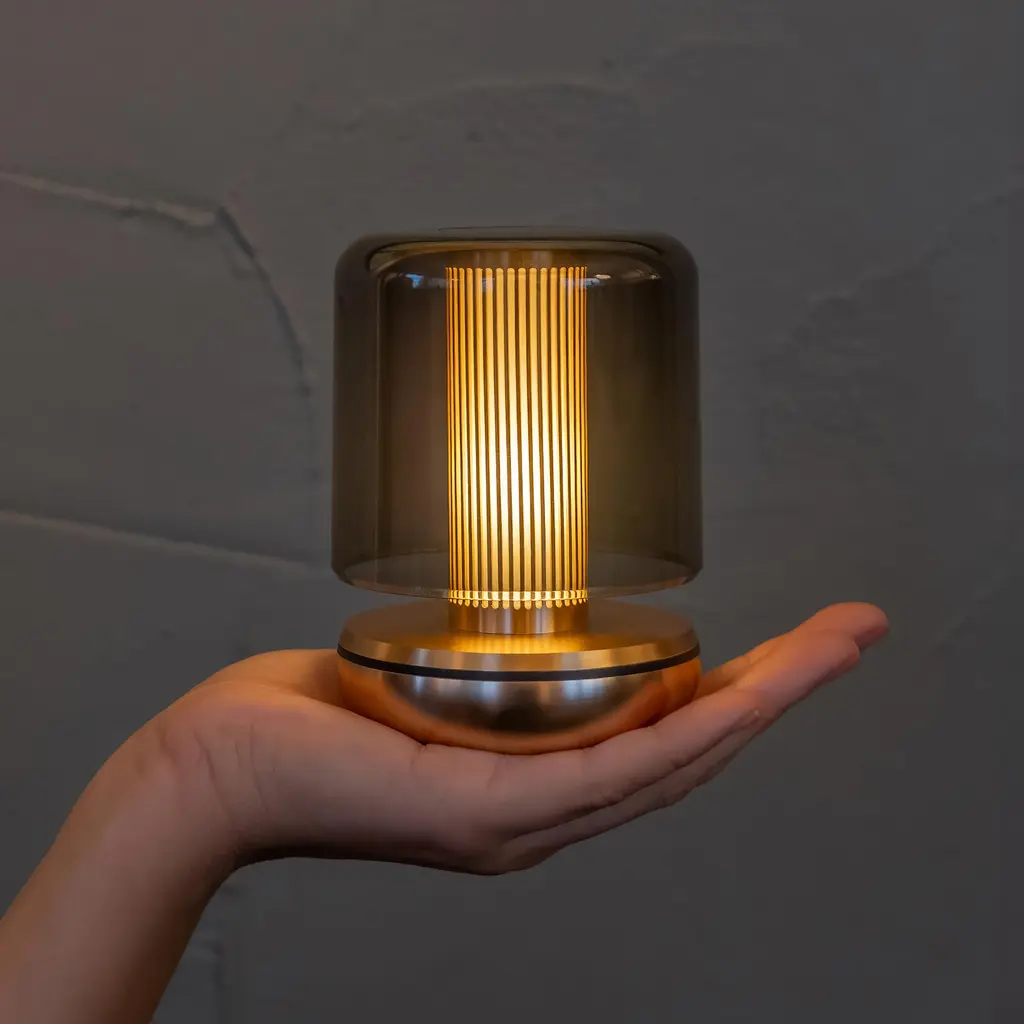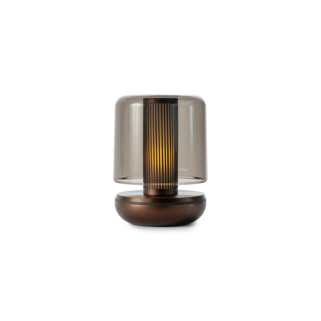 Create a cozy atmosphere anywhere with the Humble Firefly Table Lamp. Designed in Amsterdam, this modern lamp takes inspiration from glowing beetles and tealights to illuminate your home with a warm glow. The shade comes in frosted or smoked finishes, each filtering the light in different ways. As for the base, it comes with either a bronze or a gold color, offering a refined solution to brighten any space. Made with a waterproof construction, the Humble Firefly lamp can be safely used outdoors. You can bring it into a garden or on a terrace, whether you want to enjoy some moments of solitude or want to dine with friends. A dimmer allows you to adjust the brightness across three levels. The portable lamp comes with a rechargeable battery that needs only 4-6 hours to charge completely and then offer up to 140 hours of light. The Humble Firefly Table Lamp comes with a USB-C cable, but can be also charged with a Qi charger. Finally, the design allows users to easily replace parts as needed.