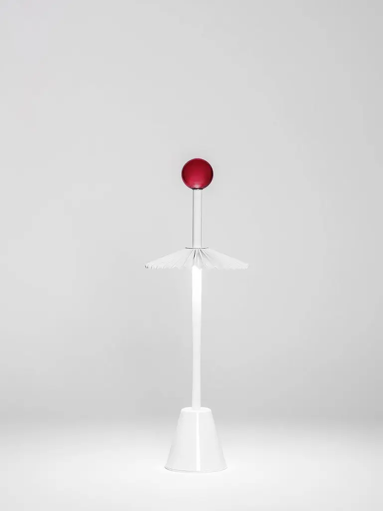 Please note that VAT is not included in the price.A slim and light lamp that, like a ballerina, hides under her tutu an intimate and warm light LED. A lamp whose light makes you smile and fascinates you. Lamp with batteries therefore without cables which makes it easy movable.Daniela Puppa, a versatile architect and designer, graduated in Architecture at the Politecnico University in Milan. She works in the product and fashion design world, and style and elegance are her trademarks. She has designed for several furniture, lighting and textile design companies such as Artemide, Barovier- & Toso, FontanaArte, Poltrona Frau, Cappellini, Limonta and many others. Daniela Puppa has also designed accessories for fashion companies such as Dior and the LVMH group. She teaches at the Faculty of Industrial Design at the Politecnico University, at the IULM University and at the Domus Academy in Milan, holding seminars and lecturing on the connections between fashion and design.Additional information: Color: White, Nickel, Champagne; Materials: Varnished aluminum structure. Blown glass knob; Typology: Table Lamp with direct light; Instructions: Direct light table lamp with rechargeable batteries; Light Source: LED; Wattage is 2.5W; Voltage: 24V; Lumen: 413 + 16; Cri: 80; Kelvin: 2700; Dimension: is 220 mm x 470 mm or 8.6"" x 18.5" inch.