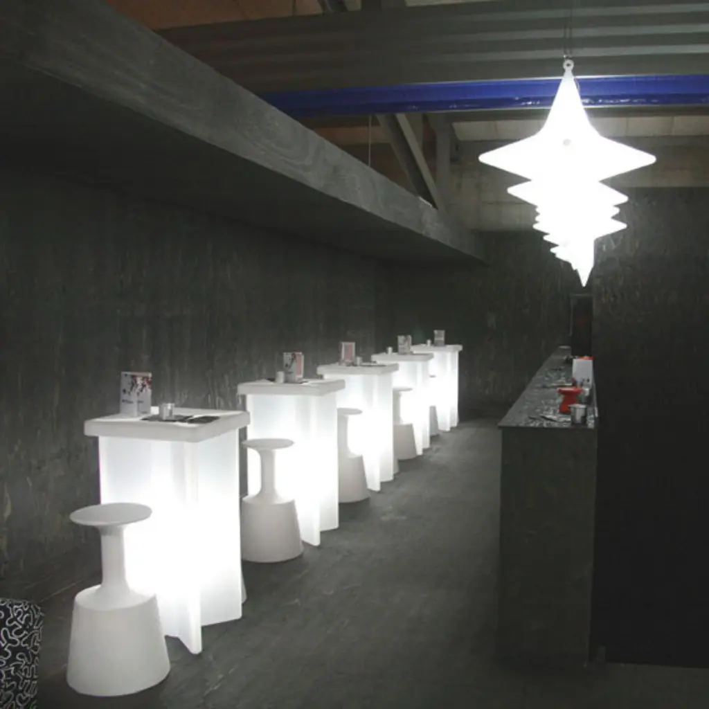 Flame Red Drink High Stool by Jorge NajeraDimensions: Ø 45 x H 75 cm. Materials: Polyethylene.Weight: 7 kg.Available in different color options. This product is suitable for indoor and outdoor use. Please contact us. Drink is a design item with a double personality: it is a bar-high stool but also an ice bucket, it depends on how it is reversed. Designed by Jorge Najera, Drink has a glass shape, and it is ideal for furnishing terraces, gardens, living in private houses, contracts and events settings, unusually and funnily.Our stories happen in places precious to us. SLIDE was born from the desire to produce furniture and light to create the perfect atmosphere that highlights emotions.Design is inspiration, surprise, joy. It's the amazement of seeing something unique for the first time. It's creating spaces to feel good and live surrounded by beauty. It means giving a personal imprint to indoor and outdoor spaces. It means choosing your ideal element that is the perfect setting for emotions and experiences, which become indelible memories. The founder Giò Colonna Romano knows this well, combining his fervent imagination with thirty years of know-how in the processing of plastic resins, giving birth to SLIDE in 2002. The first note of amazement is the luminous furniture, which immediately became a must have in the world of events. Since 2015, his son Marco Colonna Romano has taken over the reins of the company, with the same desire to grow and innovate as his father. Thanks to a new panache and the team of young people it surrounds itself with, SLIDE becomes a beloved company for outdoor furniture: new shapes, materials and tactile textures have won the hearts and ideas of architects and interior designers around the world. SLIDE has thus created complete collections and furnishings, with new shapes, whose lines arise from collaboration with internationally renowned designers of the caliber of Alessandro Mendini, Paola Navone, Stefano Giovannoni, Fabio Novembre, Marcel Wanders, Karim Rashid, Marc Sadler, Francesco Favaretto and Marcantonio.New materials were chosen and inserted, initially soft and rigid polyurethane, and then comfortable cushions, waterproof fabrics, tactile textures ideal for completing the polyethylene furnishings with taste and class. But SLIDE does not forget its first essence, lighting: in recent years it has developed a line of much more technical lamps for large areas, essential in shape but with great visual impact. For the first time, Slide has managed to give an artisanal twist to an industrial process: to meet the increasingly high demands of living, the production creates non-replicable shades, in which every small imperfection enhances the industrial process and makes each piece unique . Because Slide's strength has always been the careful reading of the market, the creation of something that didn't exist and which then became necessary: here Slide continues its production in Buccinasco, on the outskirts of Milan, but its name and its products reach more than 130 countries around the world.
