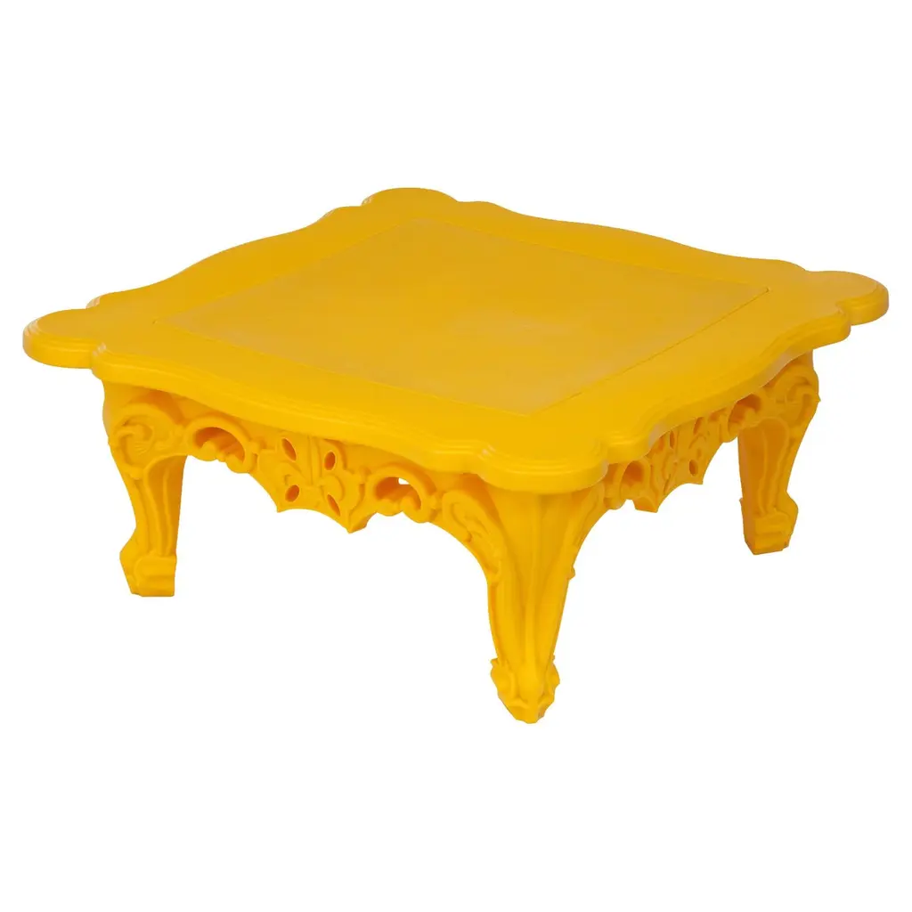 Flame Red Duke Of Love Coffee Table by Moro, PigattiDimensions: D 72 x W 72 x H 31,5 cm. Materials: Polyethylene.Available in different color and finish options. This product is suitable for indoor and outdoor use. Please contact us.Our stories happen in places precious to us. SLIDE was born from the desire to produce furniture and light to create the perfect atmosphere that highlights emotions.Design is inspiration, surprise, joy. It's the amazement of seeing something unique for the first time. It's creating spaces to feel good and live surrounded by beauty. It means giving a personal imprint to indoor and outdoor spaces. It means choosing your ideal element that is the perfect setting for emotions and experiences, which become indelible memories. The founder Giò Colonna Romano knows this well, combining his fervent imagination with thirty years of know-how in the processing of plastic resins, giving birth to SLIDE in 2002. The first note of amazement is the luminous furniture, which immediately became a must have in the world of events. Since 2015, his son Marco Colonna Romano has taken over the reins of the company, with the same desire to grow and innovate as his father. Thanks to a new panache and the team of young people it surrounds itself with, SLIDE becomes a beloved company for outdoor furniture: new shapes, materials and tactile textures have won the hearts and ideas of architects and interior designers around the world. SLIDE has thus created complete collections and furnishings, with new shapes, whose lines arise from collaboration with internationally renowned designers of the caliber of Alessandro Mendini, Paola Navone, Stefano Giovannoni, Fabio Novembre, Marcel Wanders, Karim Rashid, Marc Sadler, Francesco Favaretto and Marcantonio.New materials were chosen and inserted, initially soft and rigid polyurethane, and then comfortable cushions, waterproof fabrics, tactile textures ideal for completing the polyethylene furnishings with taste and class. But SLIDE does not forget its first essence, lighting: in recent years it has developed a line of much more technical lamps for large areas, essential in shape but with great visual impact. For the first time, Slide has managed to give an artisanal twist to an industrial process: to meet the increasingly high demands of living, the production creates non-replicable shades, in which every small imperfection enhances the industrial process and makes each piece unique . Because Slide's strength has always been the careful reading of the market, the creation of something that didn't exist and which then became necessary: here Slide continues its production in Buccinasco, on the outskirts of Milan, but its name and its products reach more than 130 countries around the world.