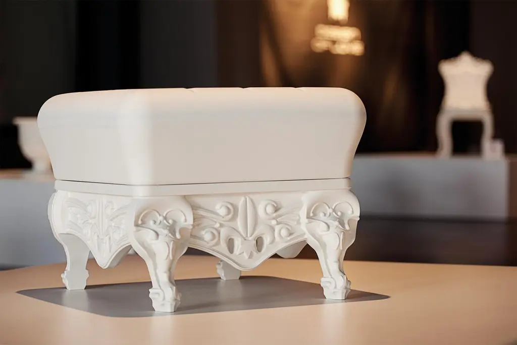 Flame Red Little Prince Of Love Pouf by Moro, PigattiDimensions: D 55 x W 55 x H 44 cm. Materials: Polyethylene.Available in different color and finish options. This product is suitable for indoor and outdoor use. Please contact us.Our stories happen in places precious to us. SLIDE was born from the desire to produce furniture and light to create the perfect atmosphere that highlights emotions.Design is inspiration, surprise, joy. It's the amazement of seeing something unique for the first time. It's creating spaces to feel good and live surrounded by beauty. It means giving a personal imprint to indoor and outdoor spaces. It means choosing your ideal element that is the perfect setting for emotions and experiences, which become indelible memories. The founder Giò Colonna Romano knows this well, combining his fervent imagination with thirty years of know-how in the processing of plastic resins, giving birth to SLIDE in 2002. The first note of amazement is the luminous furniture, which immediately became a must have in the world of events. Since 2015, his son Marco Colonna Romano has taken over the reins of the company, with the same desire to grow and innovate as his father. Thanks to a new panache and the team of young people it surrounds itself with, SLIDE becomes a beloved company for outdoor furniture: new shapes, materials and tactile textures have won the hearts and ideas of architects and interior designers around the world. SLIDE has thus created complete collections and furnishings, with new shapes, whose lines arise from collaboration with internationally renowned designers of the caliber of Alessandro Mendini, Paola Navone, Stefano Giovannoni, Fabio Novembre, Marcel Wanders, Karim Rashid, Marc Sadler, Francesco Favaretto and Marcantonio.New materials were chosen and inserted, initially soft and rigid polyurethane, and then comfortable cushions, waterproof fabrics, tactile textures ideal for completing the polyethylene furnishings with taste and class. But SLIDE does not forget its first essence, lighting: in recent years it has developed a line of much more technical lamps for large areas, essential in shape but with great visual impact. For the first time, Slide has managed to give an artisanal twist to an industrial process: to meet the increasingly high demands of living, the production creates non-replicable shades, in which every small imperfection enhances the industrial process and makes each piece unique . Because Slide's strength has always been the careful reading of the market, the creation of something that didn't exist and which then became necessary: here Slide continues its production in Buccinasco, on the outskirts of Milan, but its name and its products reach more than 130 countries around the world.