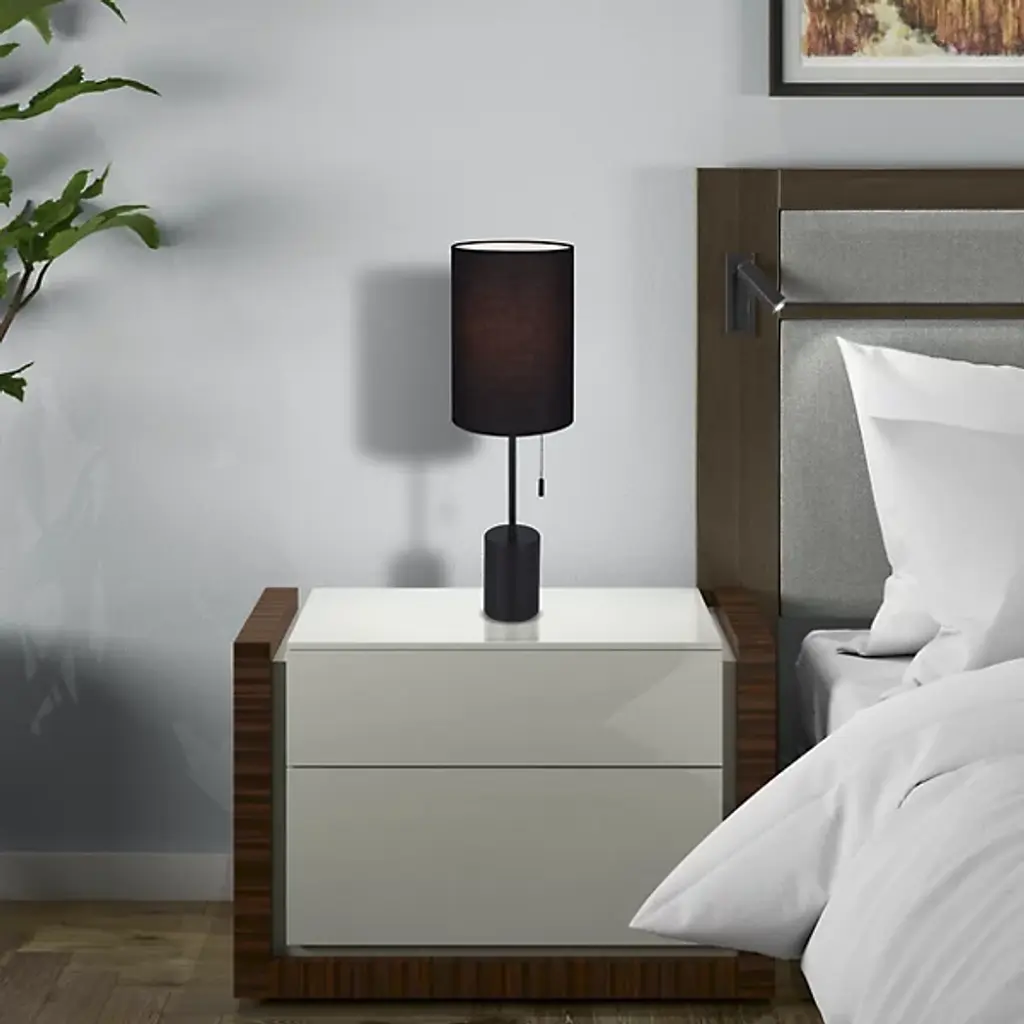 The Flint Table Lamp from Canarm exhibits how practical lighting can incorporate refined details without unnecessary complexity. The cylindrical fabric shade filters light into a gentle glow, while the sturdy base provides reliable stability. A convenient pull chain mechanism makes operation effortless, perfect for bedside or desk placement. The lamp's proportions create balanced illumination for reading, working, or ambient lighting needs. Its metal framework provides a solid foundation that anchors the design while maintaining visual lightness.