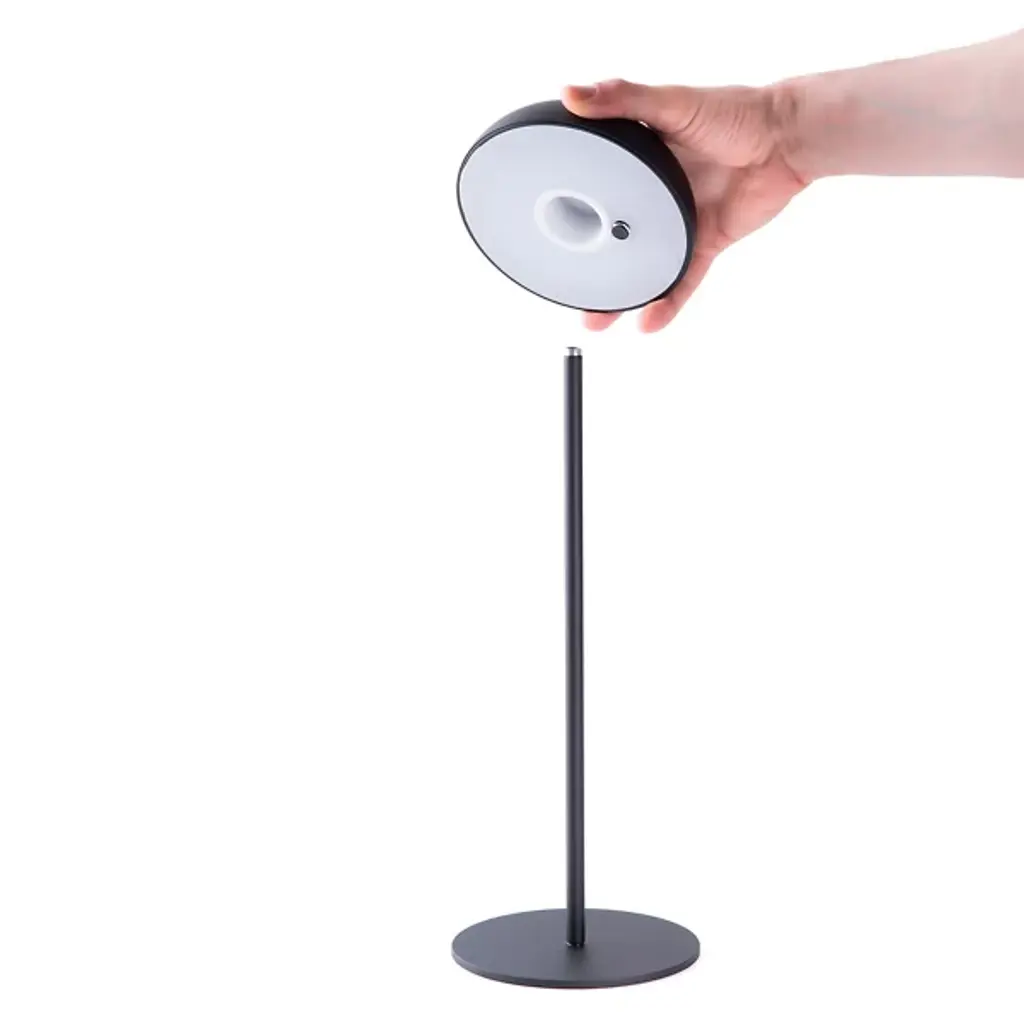 Illuminate any place with the Float Rechargeable LED Table Lamp by Axolight. A clean and minimalistic piece, this fixture is powered by a rechargeable LED contained within a rounded aluminum head. A smooth disc-shaped base steadies the piece as it sends a slender stem up to the fixture’s frosted diffuser. With up to 9 hours per battery charge, this lamp can be taken from indoor spaces to outdoor spaces to bring light and style where it’s needed most.