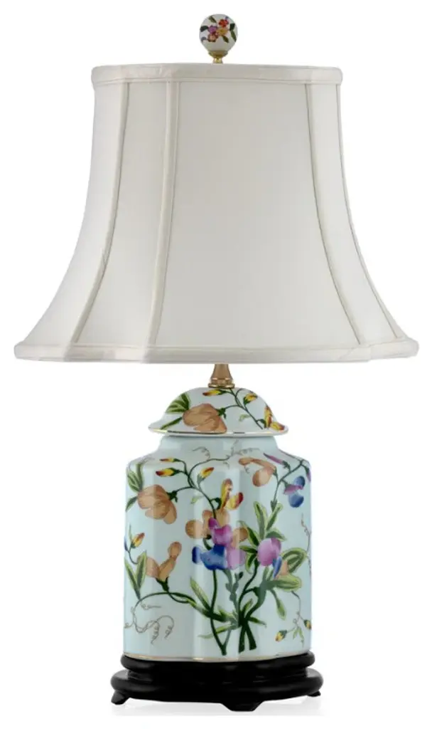 Floral Bird Motif Porcelain Tea Caddy Table Lamp, 19.5"