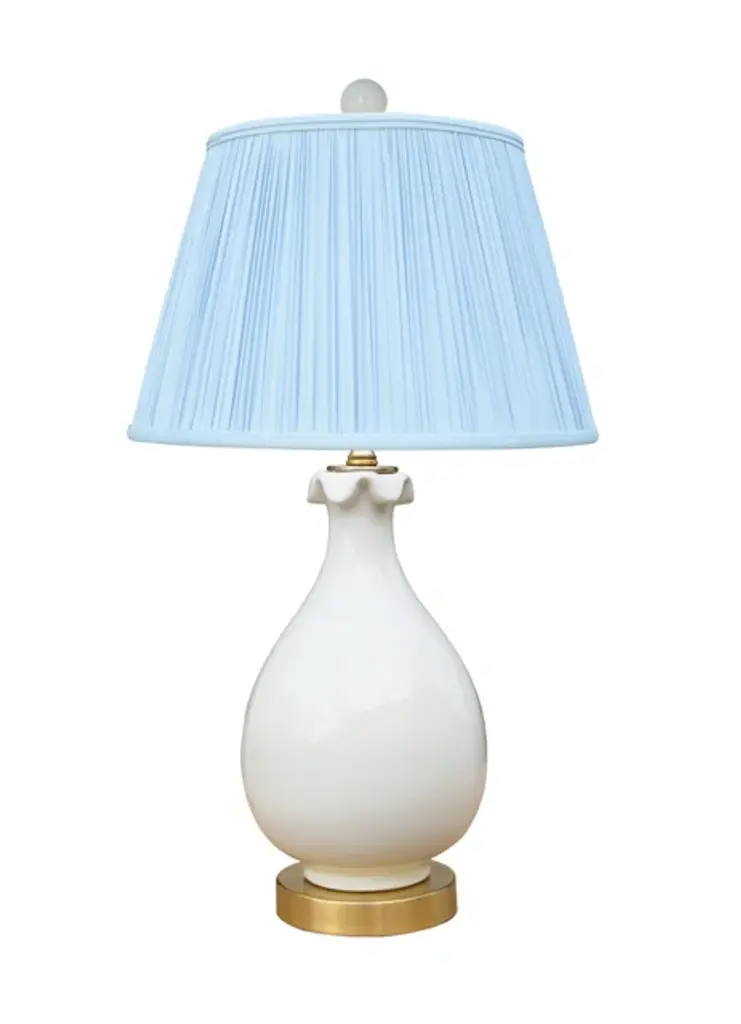This porcelain table lamp boasts a classic, refined silhouette. Colorful floral motives and a pattern of gray vertical stripes with rounded edges grace its bulging body, which is enlivened by luminous golden extremities. A wide fabric lampshade whose border matches the base's colors diffuses the light produced by a single E27 max 100W light bulb.