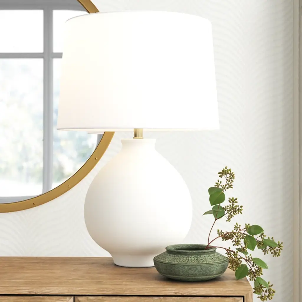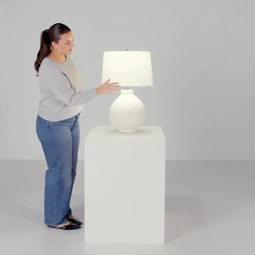 Bring eye-catching style to your tabletop with our graceful and sculptural Florencia table lamp. It showcases voluminous and sensuous curves with an asymmetric profile to strike a visual impact in any corner. A white empire shade beautifully diffuses light to highlight the graceful flair of its white ceramic base. Playful yet sophisticated, our table lamp serves as an elevated addition to your entryway console, bedside table, or end tables in your living room.