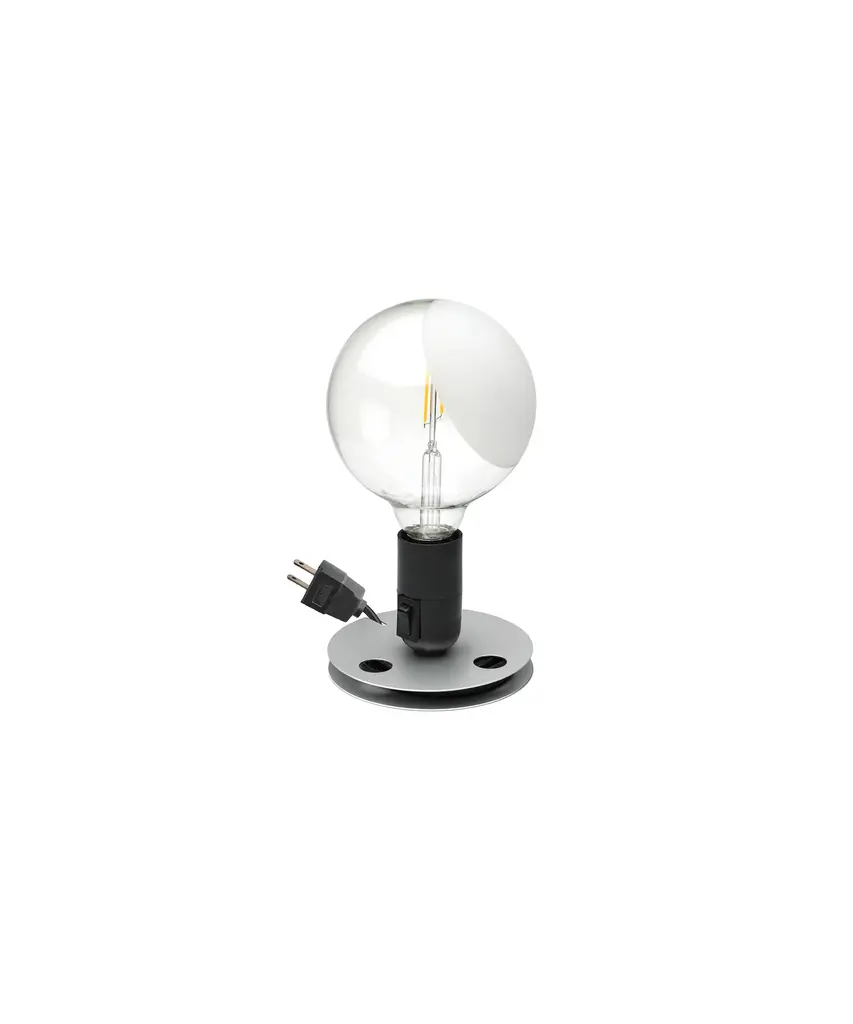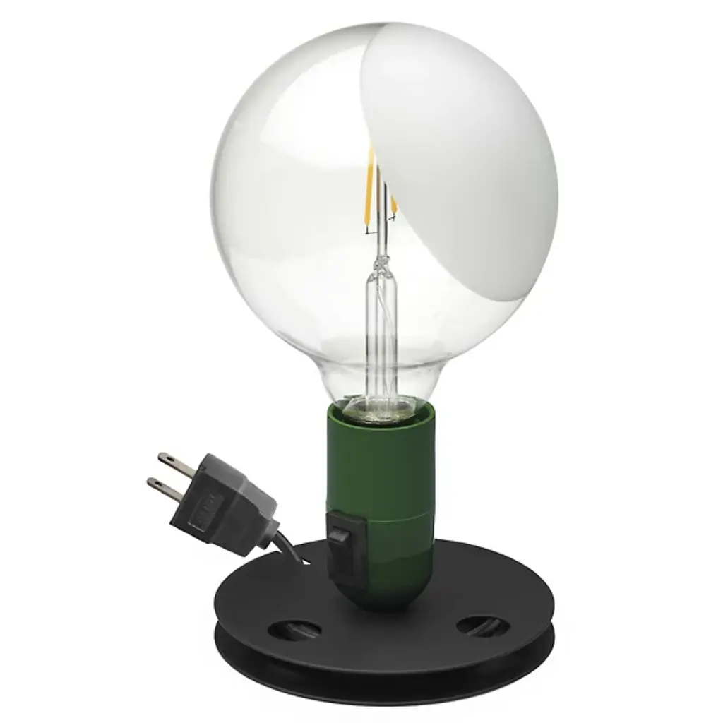Flos Lampadina LED Table Lamp in Turquoise by Achille CastiglioniIts name means, literally, “bulb,” and it’s easy to see why with one look at this playful 1972 Achille Castiglioni design. This unique table lamp provides direct and diffused light through a partly sandblasted clear globe. Its base is anodized aluminum and contains the excess power cord. There is an on/off switch on the lamp holder.Inspiration behind the design: Artist Achille Castiglioni had a knack for offering a new perspective on the most humble of objects. Here, the result feels especially “meta” as he plays with the concept of light through a recreation of a light bulb.Additional information:Material: Stainless steelFinish: TurquoiseEnvironment: Indoor - Dry LocationMounting: Table TopLamp (Bulb) Description: 2W Lampadina Medium G40 LED 2600KVoltage: 120IP Rating: IP20Switching: On-off switch on socketCord Length / Color: 90" BlackLamp ID: LED057Dimension: Ø 4.92 x 9.44 H inAvailable in other finish options: Black, orange, green, white, violet