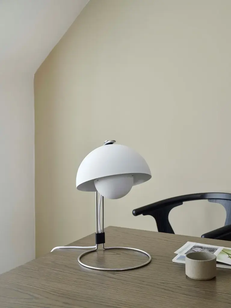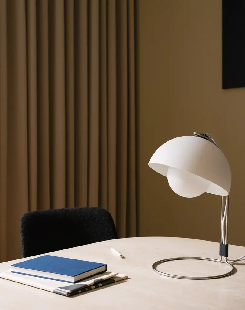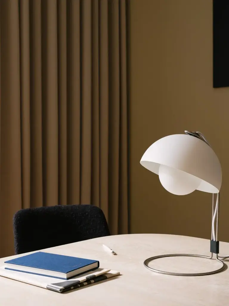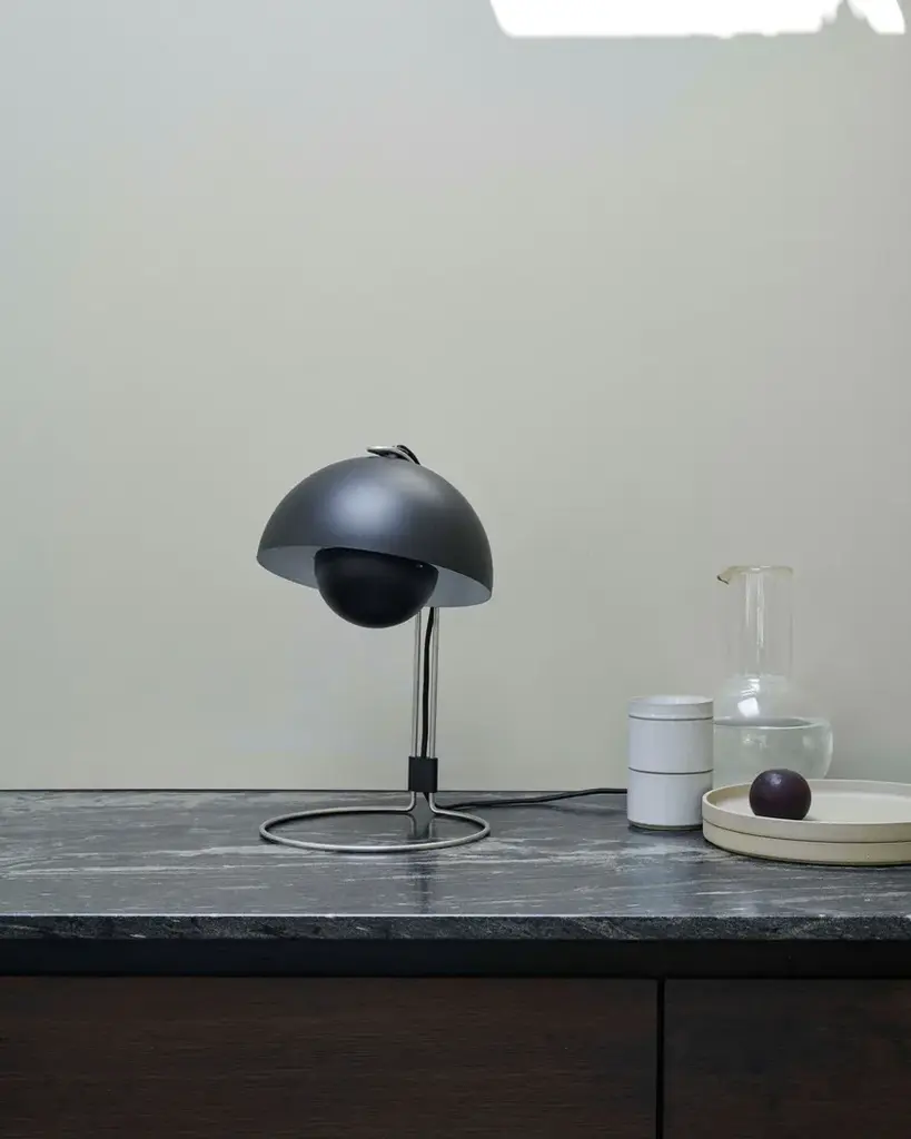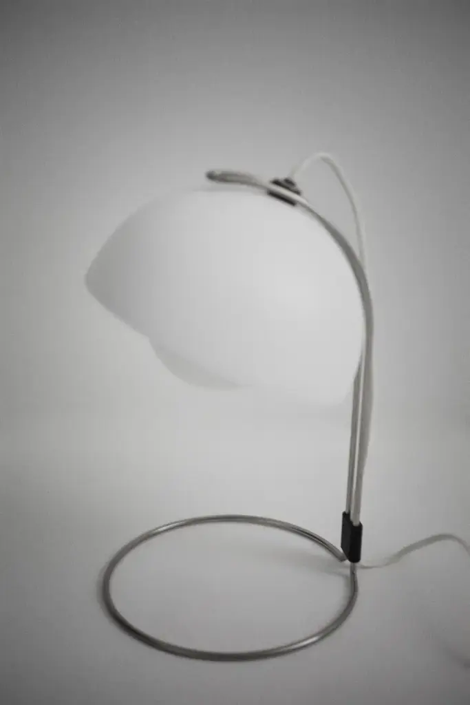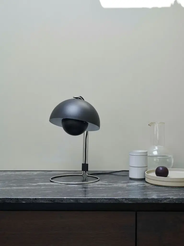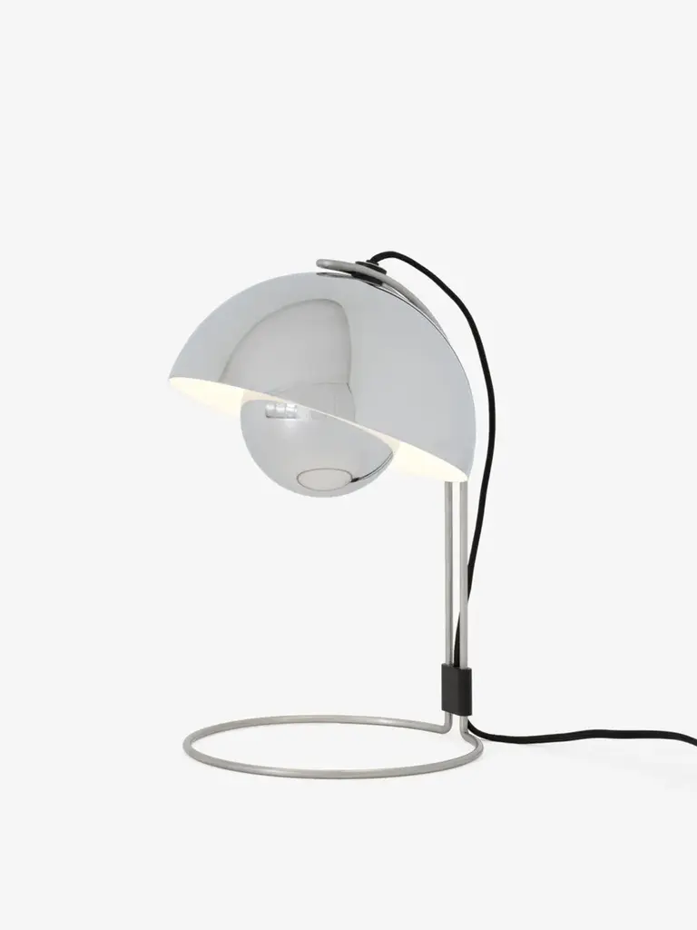 The Flowerpot lamp became synonymous with the Flower Power movement from the late 60s. Reflecting a break from convention to embrace a more open, modern mentality that promoted peace and harmony. Such was the mindset of its designer, Verner Panton. One of the most forward-thinking talents of his time. Production processThe two shades are made from deep drawn metalEnvironmentIndoorMaterialLacquered metal with 2 meter fabric cordColoursMatt BlackMatt WhiteChrome-PlatedVoltage (V):220-240V – 50HZLight source & energy efficiency classE27 Max 40 WattThe luminaire is compatible with bulbs of energy class: A++ – EBulb is not includedCord length200cm/78.7inCertificationsCE, IP20, Class IICleaning instructionsClean with soft dry cloth. Always switch off the electricity supply before cleaning
