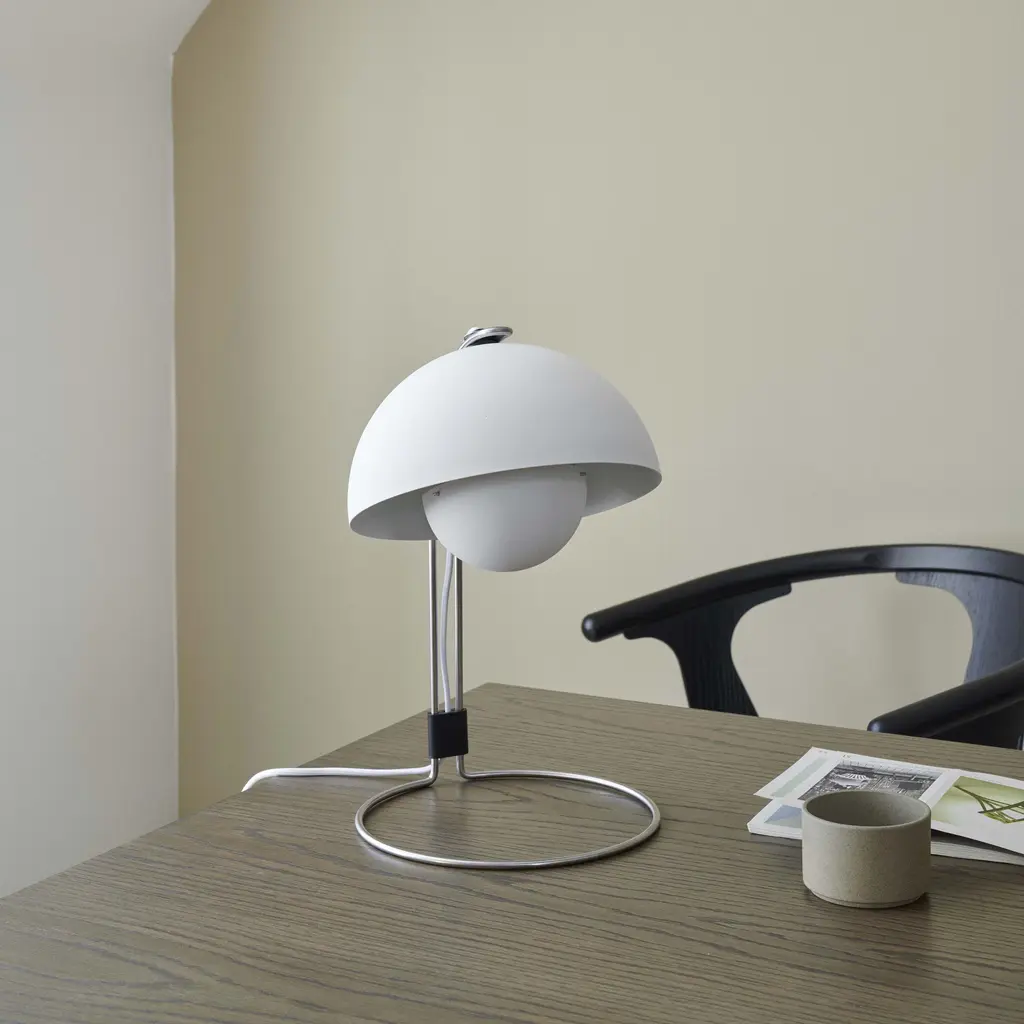 A ray of light to a happy, colorful future?The late, great Verner Panton believed in this possibility, and designed with this in mind. The visionary Dane was the first to do inflatable furniture, cardboard houses and single-form, injection-molded plastic chairs—and all with an optimistic nod. Those chairs appeared in Stanley Kubrick's 1968 masterpiece 2001: A Space Odyssey; the same year experienced revolutions in the streets of Paris, Rome and the U.S. celebrating change by a generation fueled on Flower Power and a new outlook on the world.Verner marked it all the next year with the FlowerPot series of table and pendant lights. Spherical, bold and modern, they are as fresh looking now as they were in 1969. No wonder Copenhagen house &Tradition decided to reissue them.