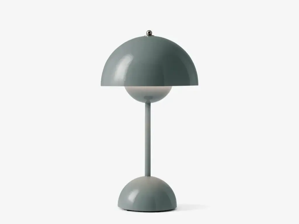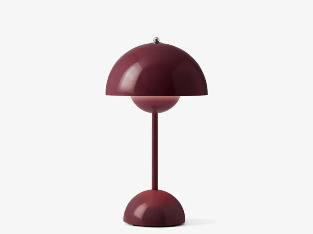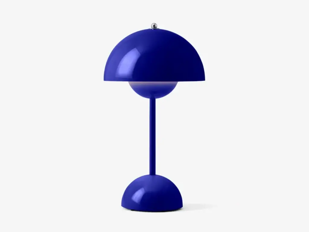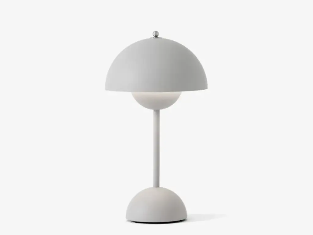 The Flowerpot, a vividly coloured lamp with a rounded pendant that hangs from the semi-domed upper shade, embodies the experimental attitude of Verner Panton. Slightly smaller in size than the table lamp version, and deliberately lightweight, the portable VP9 comes equipped with a USB charging cable. It is available in a wide range of contemporary colours and will bring a cozy atmosphere to indoor and outdoor settings.Production processThe base and the lamp shade are molded in polycarbonate (PC). The dimmer is made from steel.EnvironmentThis lamp is for indoors use only. It can be taken outdoors, but must be kept and stored indoors.MaterialPolycarbonate (PC), steelColoursBeige Red (RAL3012)Light Blue (NCS S3020 R90B)Mustard (NCS S3060Y10R)Red Brown (RAL8012)Grey Beige (NCS S4005Y20R)Dark Green (NCS S8010B70G)White (RAL9010)Stone Blue (NCS S6005-B80G)Matt Black (RAL9017)Matt Light Grey (PT 3U)Matt White (RAL9003)Voltage:Recharge input: 5.0V, 2ABatteryOperating time when fully charged: 10 hoursCharging time: 8 hoursReplaceable &Tradition battery. Can be purchased at &Tradition.Light Source & Energy Efficiency3W LED boardLight output: 104 lumenCRI: >90Colour temperature (Kelvin): 2700KLED life time: 50.000 hoursThe luminaire is compatible with bulbs of energy class A++ – A.Replaceable &Tradition light bulb. Can be purchased at &Tradition.Dimmability3 levels (100% – 50% – 20%)Charging CableMicro USB, 200cm / 78.7inCertificationsCE, CB, IP44, Class IIICleaning instructionsWipe the surface of the lamp with a soft, damp sponge or cloth, and wipe immediately with a dry cloth.