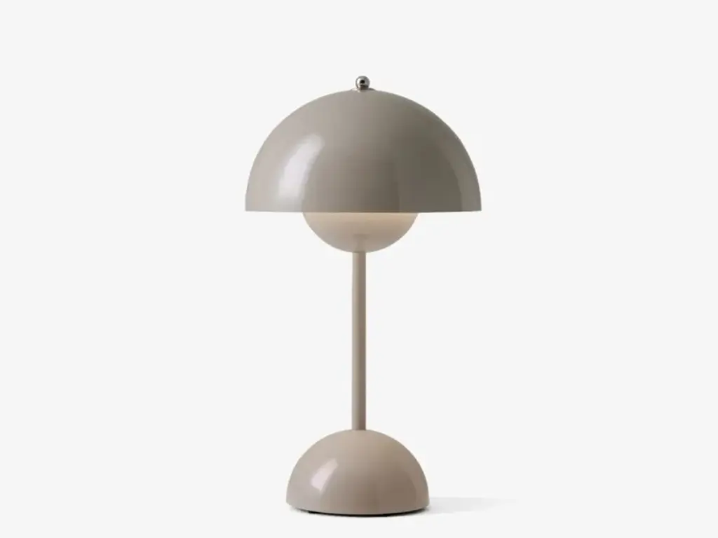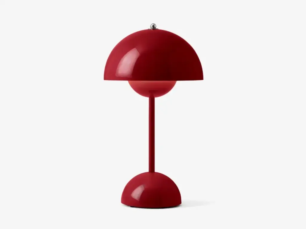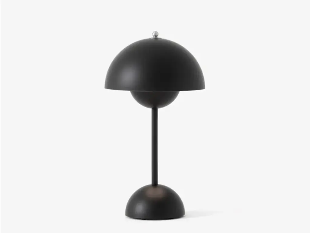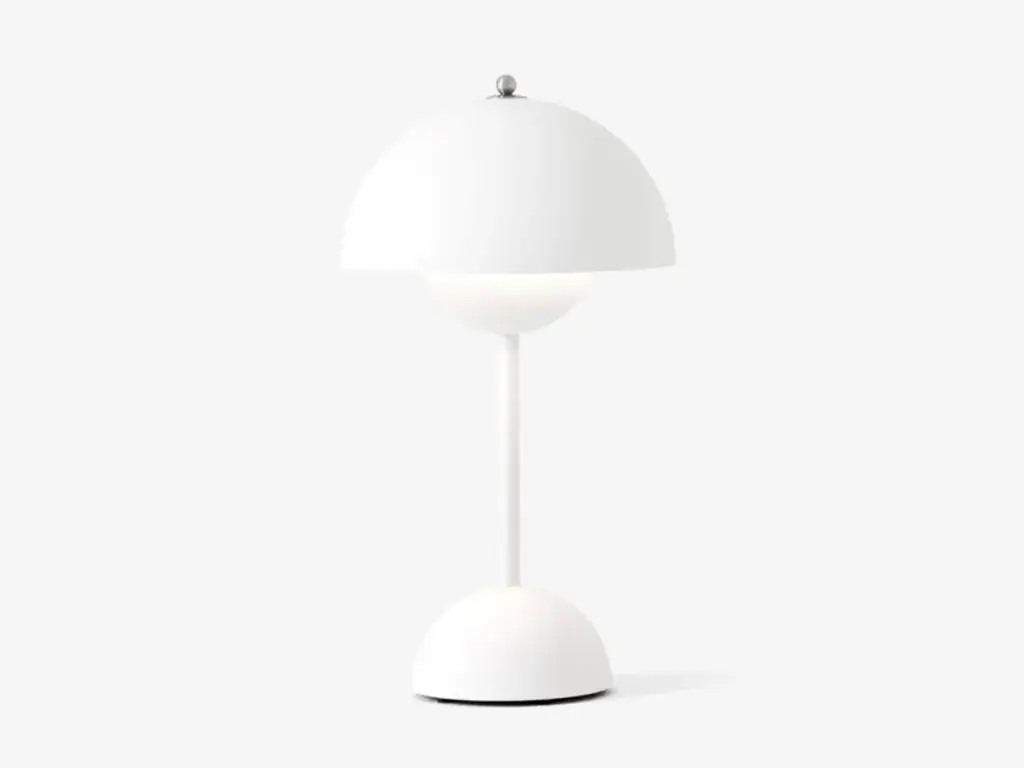 The Flowerpot, a vividly coloured lamp with a rounded pendant that hangs from the semi-domed upper shade, embodies the experimental attitude of Verner Panton. Slightly smaller in size than the table lamp version, and deliberately lightweight, the portable VP9 comes equipped with a USB charging cable. It is available in a wide range of contemporary colours and will bring a cozy atmosphere to indoor and outdoor settings.Production processThe base and the lamp shade are molded in polycarbonate (PC). The dimmer is made from steel.EnvironmentThis lamp is for indoors use only. It can be taken outdoors, but must be kept and stored indoors.MaterialPolycarbonate (PC), steelColoursBeige Red (RAL3012)Light Blue (NCS S3020 R90B)Mustard (NCS S3060Y10R)Red Brown (RAL8012)Grey Beige (NCS S4005Y20R)Dark Green (NCS S8010B70G)White (RAL9010)Stone Blue (NCS S6005-B80G)Matt Black (RAL9017)Matt Light Grey (PT 3U)Matt White (RAL9003)Voltage:Recharge input: 5.0V, 2ABatteryOperating time when fully charged: 10 hoursCharging time: 8 hoursReplaceable &Tradition battery. Can be purchased at &Tradition.Light Source & Energy Efficiency3W LED boardLight output: 104 lumenCRI: >90Colour temperature (Kelvin): 2700KLED life time: 50.000 hoursThe luminaire is compatible with bulbs of energy class A++ – A.Replaceable &Tradition light bulb. Can be purchased at &Tradition.Dimmability3 levels (100% – 50% – 20%)Charging CableMicro USB, 200cm / 78.7inCertificationsCE, CB, IP44, Class IIICleaning instructionsWipe the surface of the lamp with a soft, damp sponge or cloth, and wipe immediately with a dry cloth.