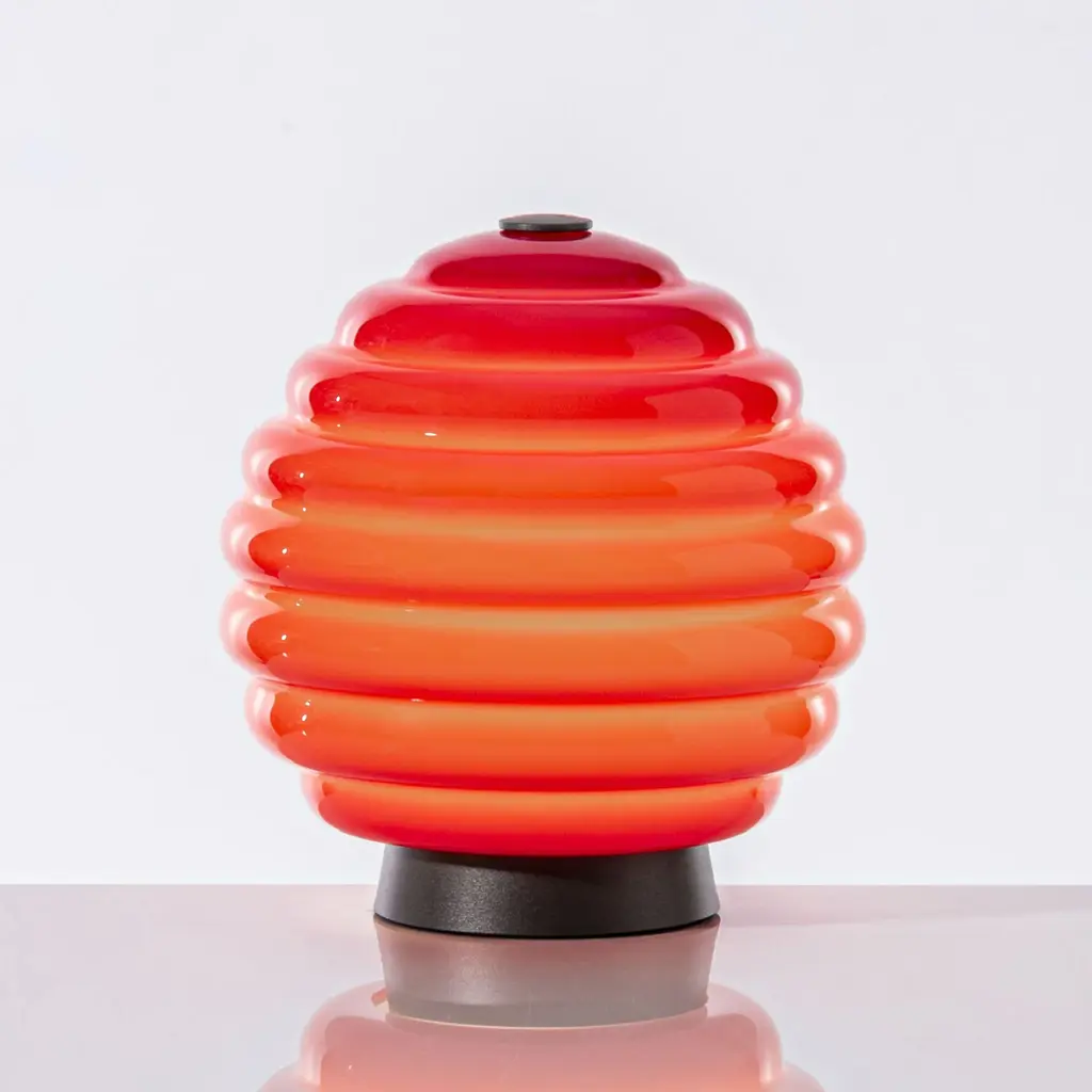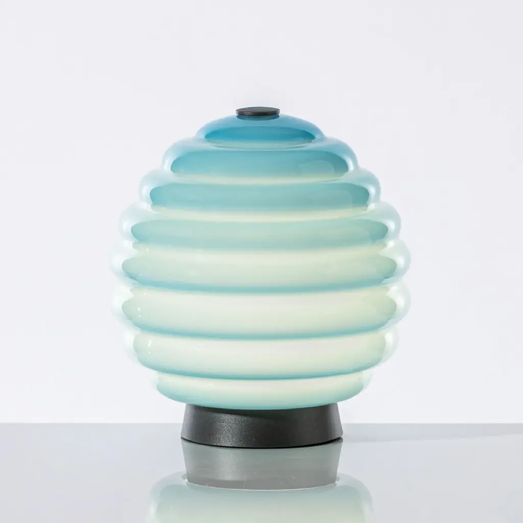 The historic vase designed in 1930 by Napoleone Martinuzzi is renewed and becomes a rechargeable battery table lamp, combining the elegance of the past with the convenience of the present. This fascinating lamp transforms a historic glass vase into a unique light source. With a timeless design, Deco enchants with its intrinsic beauty. Every detail, with its fluid and concentric lines, tells a story of past eras. However, the real magic begins when this work comes to life as a lamp. The rechargeable battery table lamp also offers a wide range of lighting options. You can adjust the intensity of the light according to your needs and create the perfect atmosphere for every occasion.