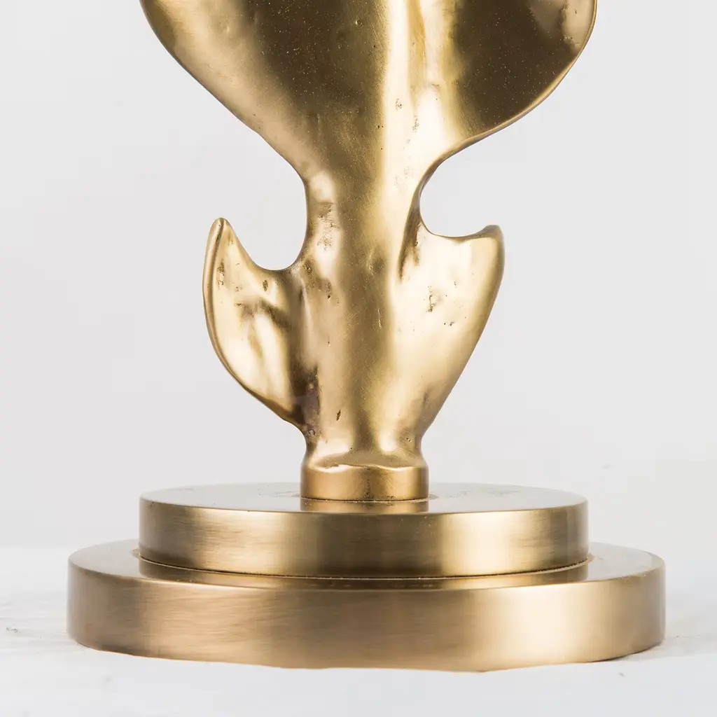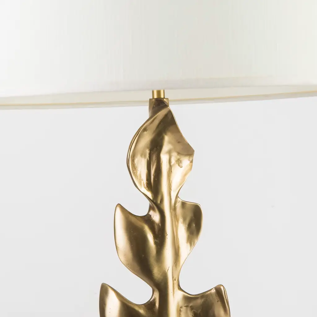 The "Foglia" table lamp is a stunning example of handcrafted artistry. Entirely crafted from cast brass, the lamp features an intricate, hand-engraved design that mimics the delicate veins of a leaf. This unique design creates a striking focal point, adding a touch of organic elegance to any space. The E27 socket accommodates a maximum 60-watt bulb. Bulbs are not included.