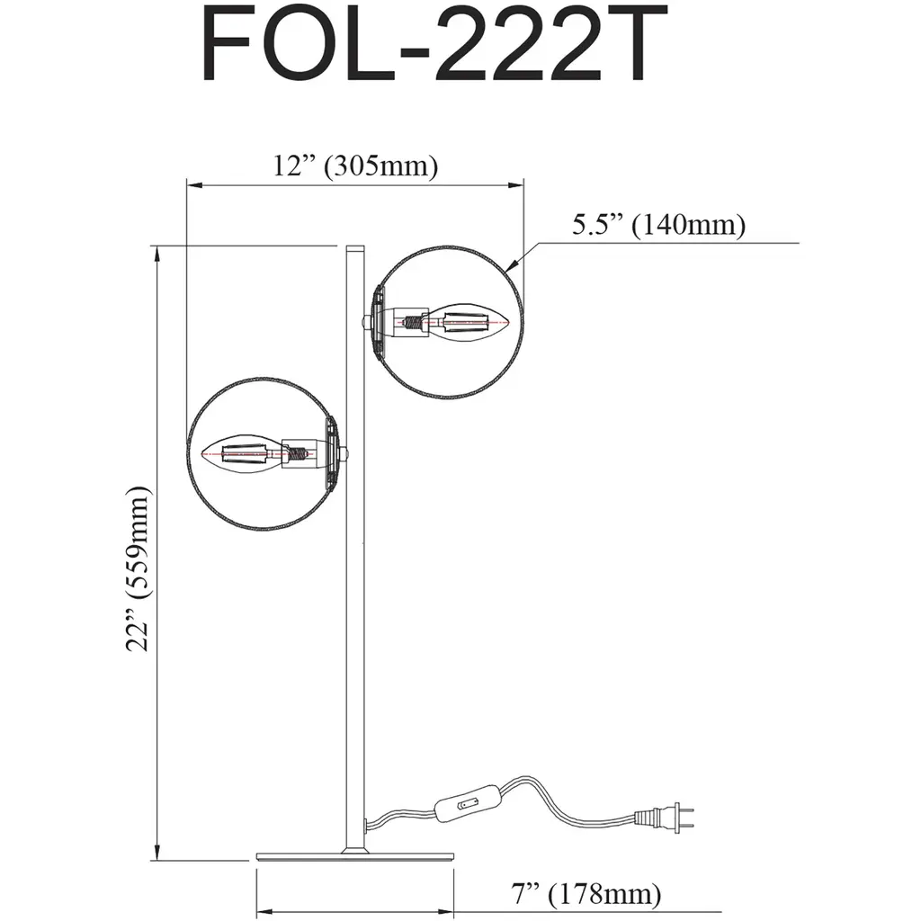 Dainolite Contemporary Folgar Table in Painted Matte Black Metal for the Floor with 2 bulb, E12 socket base 40 Watts max Not Dimmable and UL Approved for Dry with a 1 Year warranty. Great for Living, Office, Bedroom rooms and Commercial use. Features include , Great design suited for all décor settings, LED compatible 8ft Cord provides ample reach