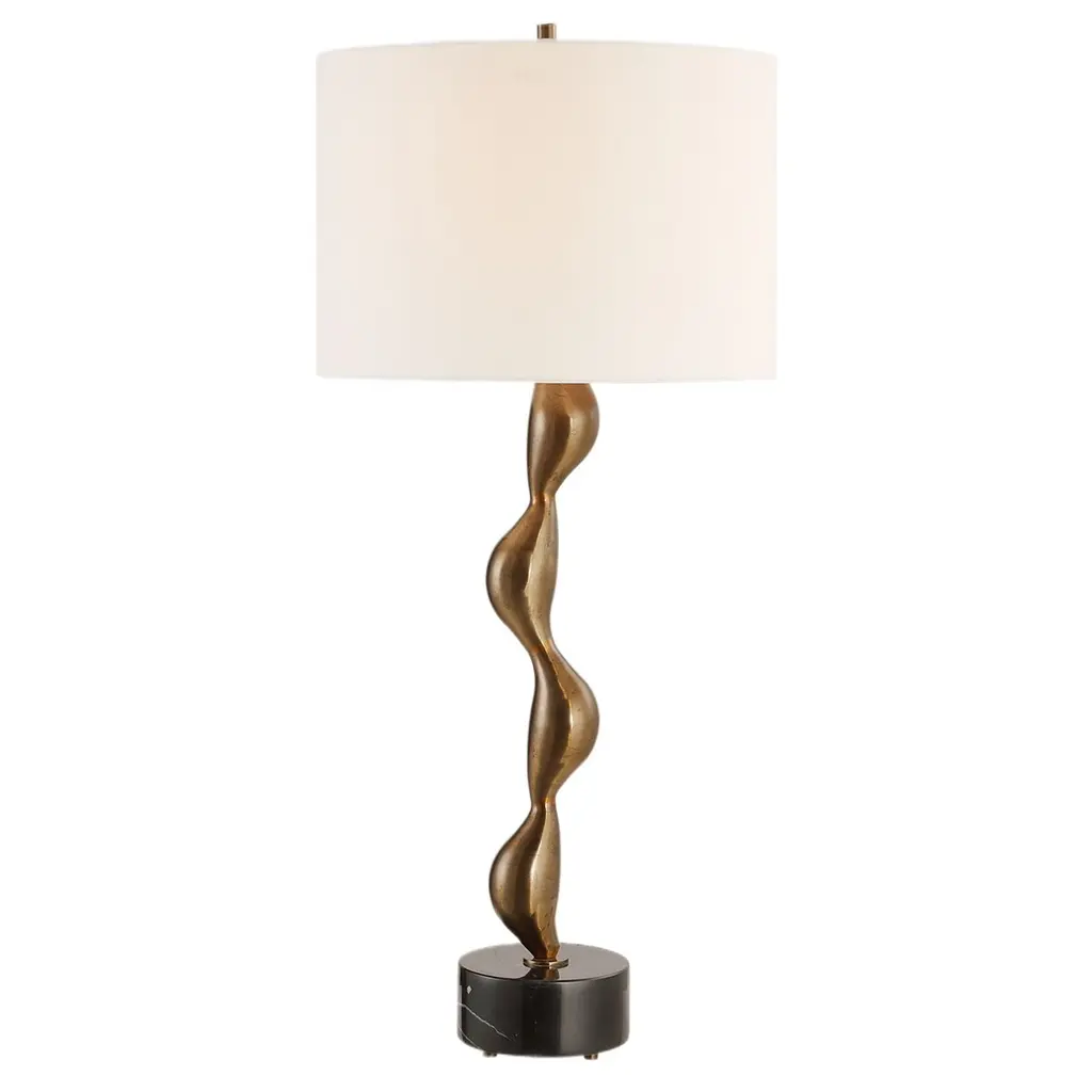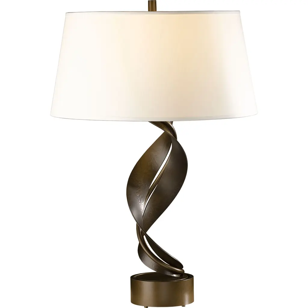 Ribbons of hand-forged steel dance around each other and the pipe and rise up from the base of this table lamp on their journey to the stylish shade. Handcrafted by artisans here at our forge in Vermont, each piece is unique.
