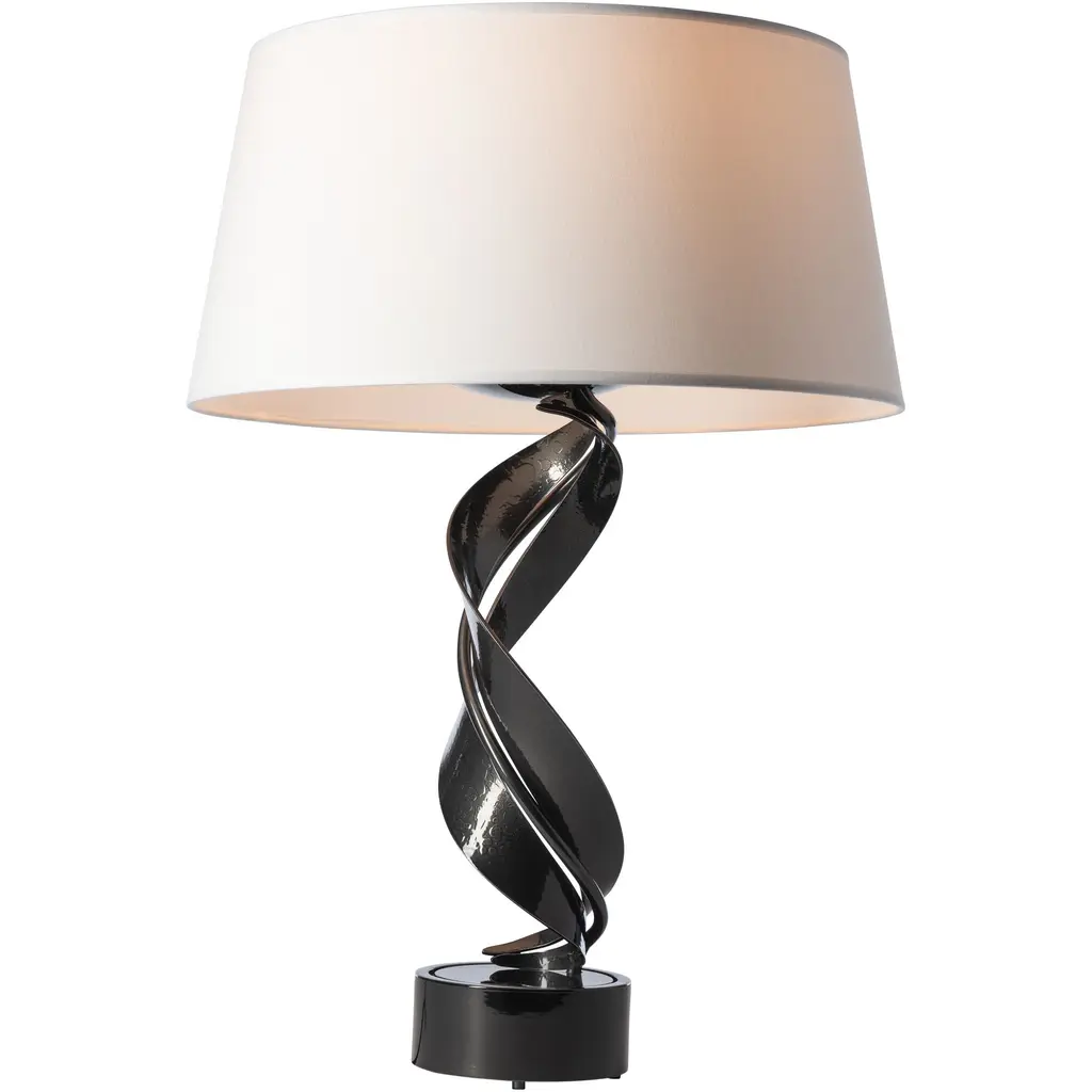 Ribbons of hand-forged steel dance around each other and the pipe and rise up from the base of this table lamp on their journey to the stylish shade. Handcrafted by artisans here at our forge in Vermont, each piece is unique.