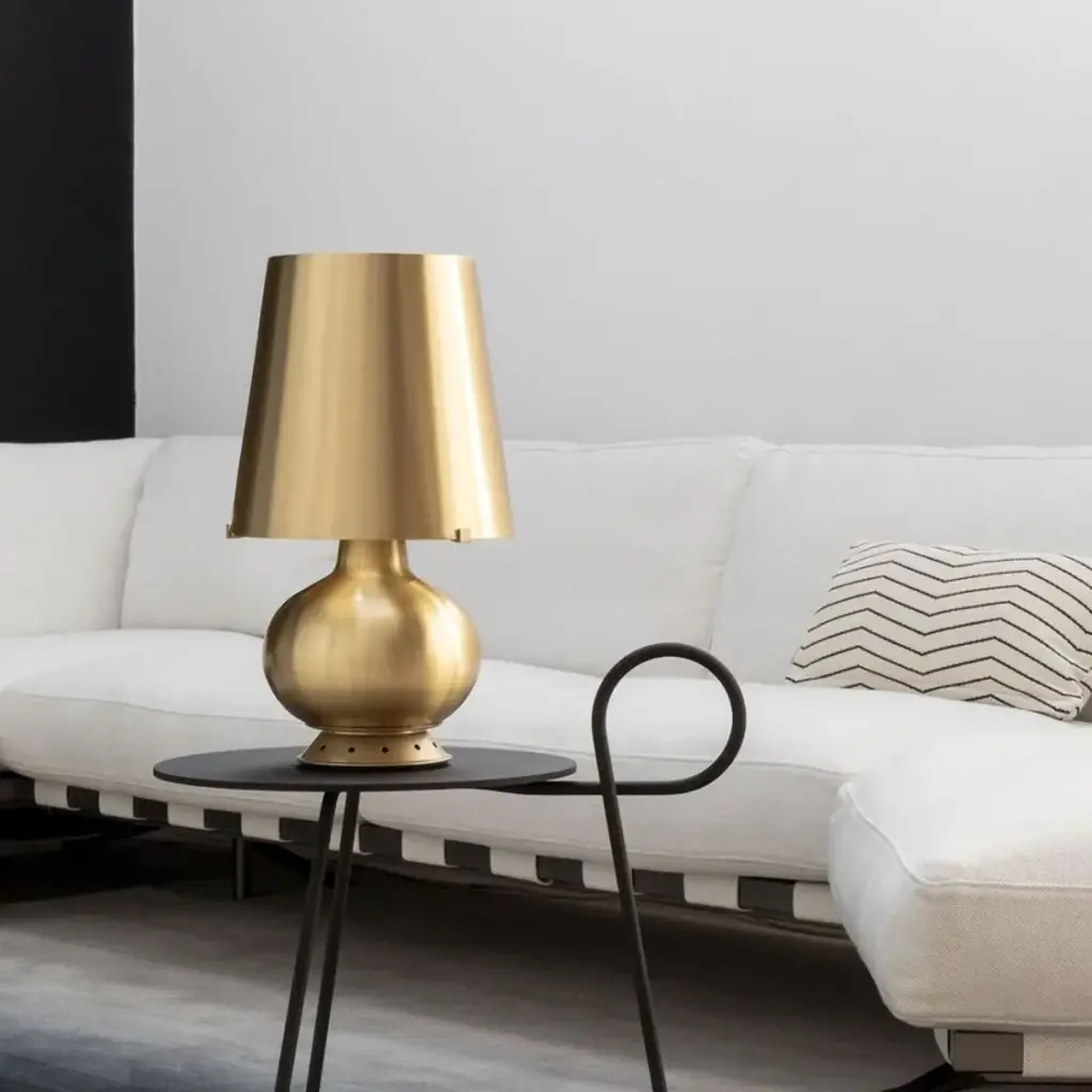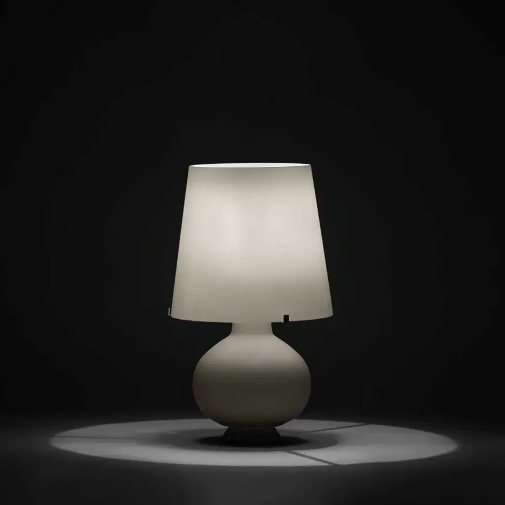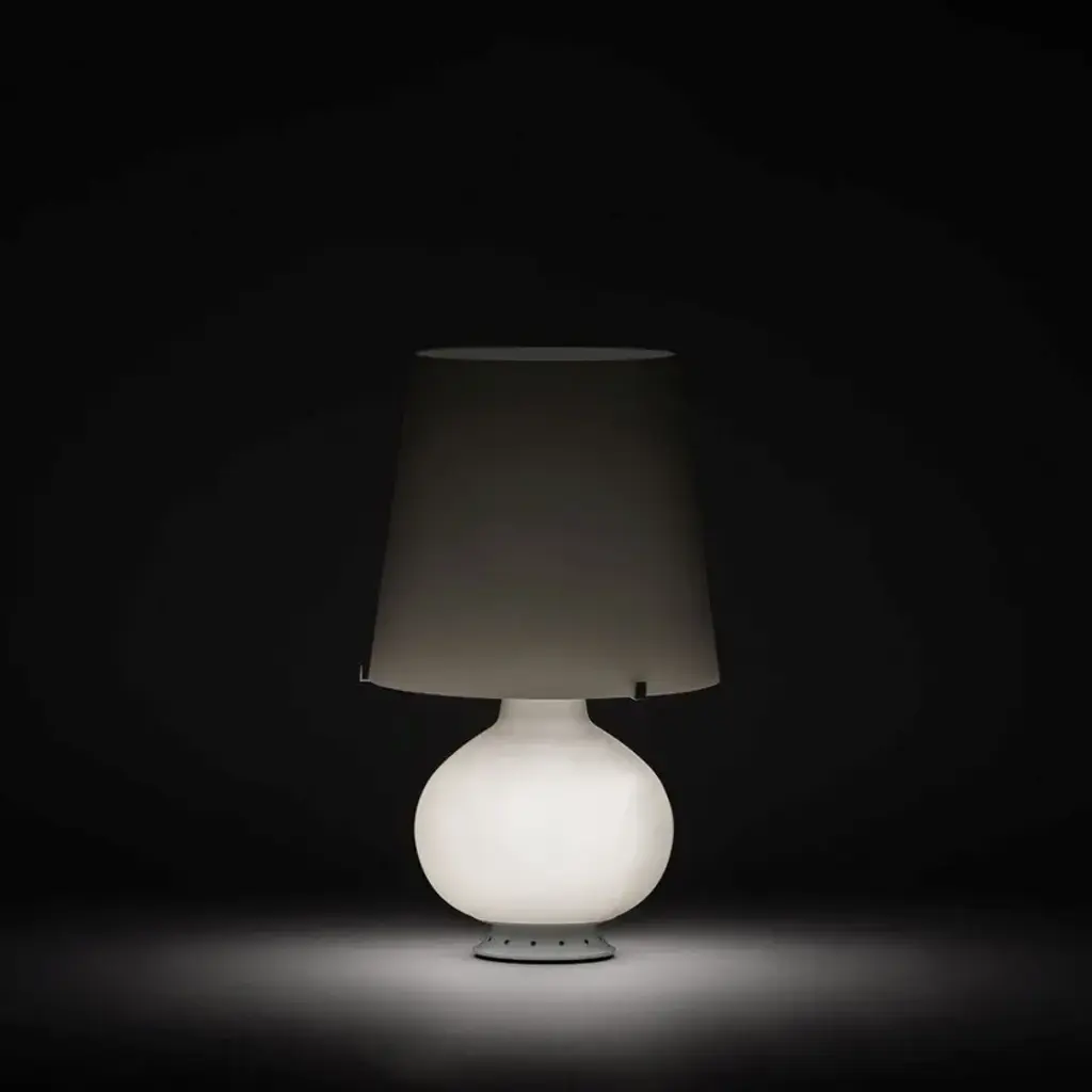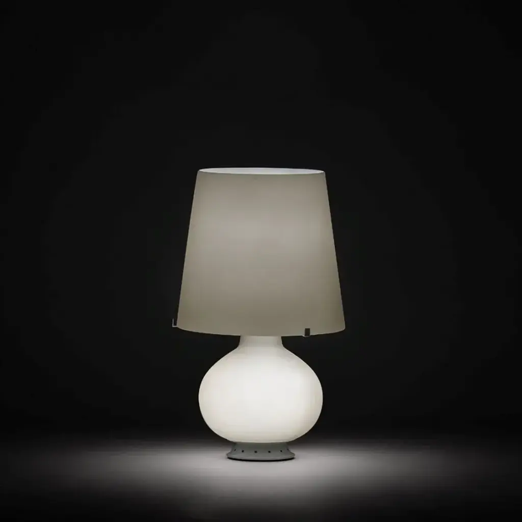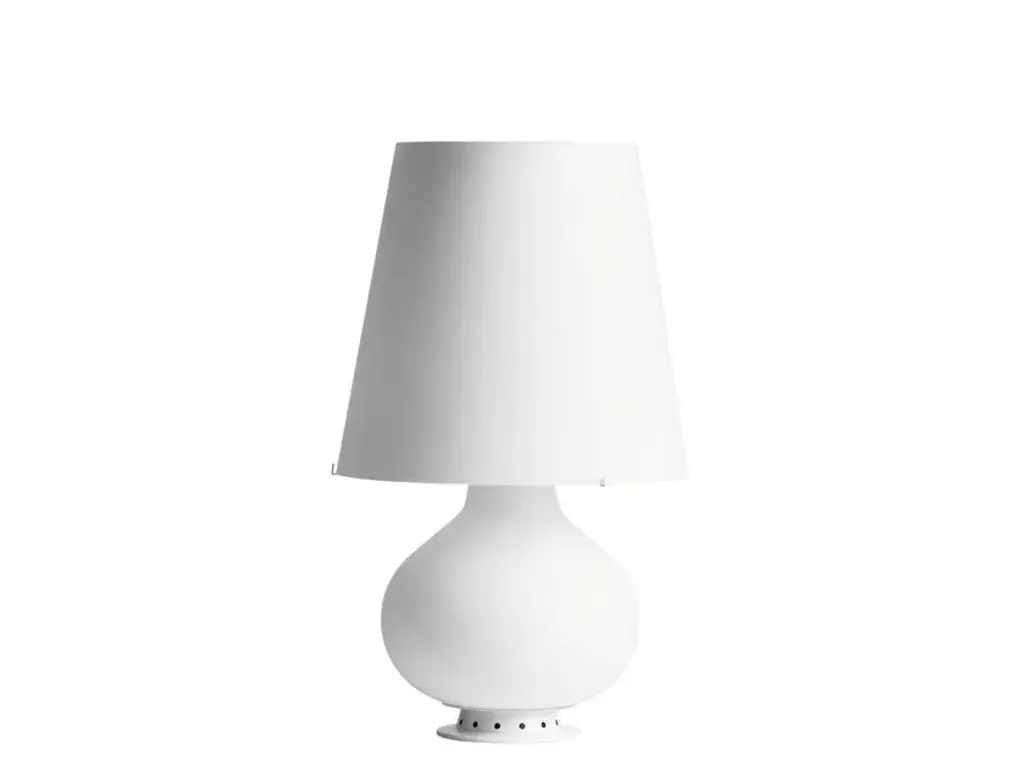 Table lamp with diffused and dimmable light. Painted metal frame. Black power cable, dimmer and plug. European two-pole plug. Bulb not included.Variants:- Diffuser and base in white or colored paste blown glass.- Diffuser and base in satin brass.- Diffuser in blown glass colored in glossy paste and base in satin brassMATERIALS DESCRIPTION- glass (available colors: light gray - purple - black - white)- metal (color: brass)- colored glass, metal (available colors: brass/black or brass/white)GROUP TENSIONBulbENERGY CLASSA++ >> ERECOMMENDED SOURCE- GLASS:LED 1x21W E27 (2700K, 2500Lm) + LED 2x4,5W E14 (2700K, 2x470Lm) or HA 1x100W E27 (2900K, 1800Lm) + HA 2x30W E14 (2700K, 2x405Lm)- METAL:LED 1x21W E27 (2700K, 2500Lm) or HA 1x100W E27 (2900K, 1800Lm)- METAL AND GLASSLED 1x21W E27 (2700K, 2500Lm) or HA 1x100W E27 (2700K, 1800Lm)MADE INItalyALIMENTATION CABLEBlackDIMMERDimmer includedDesigned in 1954 by the famous French Master glassmaker and decorator Max Ingrand, this lamp was originally named 1853 and, at a later time, Fontana, in homage to the company of which the Master was Artistic Director for a decade. For design enthusiasts and connoisseurs of the brand’s history, 1853 still remains as a sort of nickname.The first symbol of timeless object of design, still today best seller and evergreen design icon, Fontana is the abat-jour par excellence. The peculiarity of Fontana is its multiple light sources: both the base and the lampshade contain one or more. The larger version also allows indirect lighting, thanks to an additional source that projects a beam of indirect light upwards. The differentiated light sources make it possible to satisfy different lighting needs: from a soft, relaxing glow to a sharp beam for reading to suggestive ambient light. Available also with Led light sources. A fabulous lamp in frosted white blown glass, already riedited in a total black variant, it is now proposed in a colored and brand new version - light grey and purple amethyst - to reinforce the contemporaneity of the project. “Light and colour are centrainly the most specific elements in nature. With them we have RELIEF, MOTION, LIFE” stated Max Ingrand. “Actually the history of architecture tells us what was the role of illuminated, opaque, translucent colour in interior and exterior architecture (…)Light was no longer just a means to breathe life into colour but became a means to breathe life into an entire architecture.”