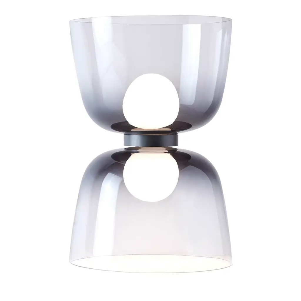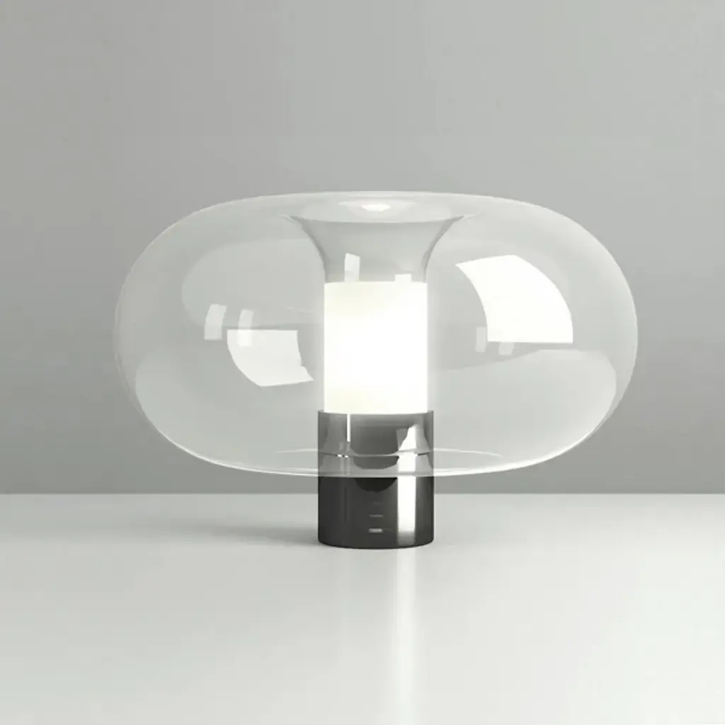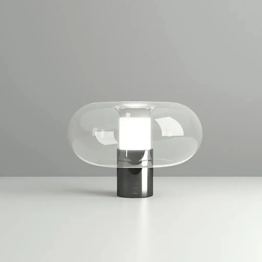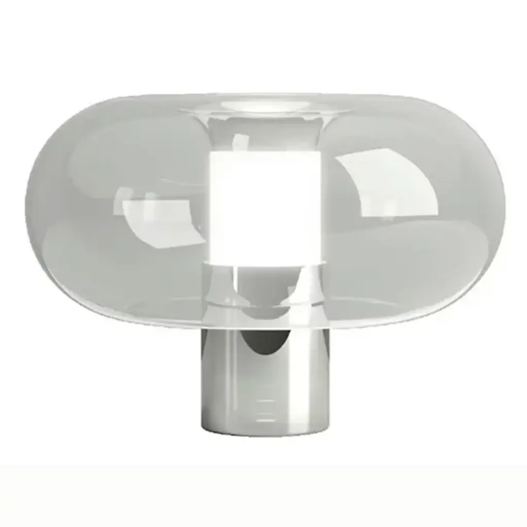 The Fontanella Table Lamp from FontanaArte presents personalized Italian craftsmanship, showing off luminous artistry. Designed by Federico Peri, this contemporary masterpiece marries a rounded shade of crystalline glass with a simple central structure of galvanized metal. Skilled artisans meticulously unite a sandblasted inner tube set around the lamping with a bubble-shaped exterior of blown glass, creating an ethereal fusion of transparent and satin finishes. Each handcrafted piece shows the refinement of Italian glassworking expertise, transforming direct light into a sophisticated ambiance.