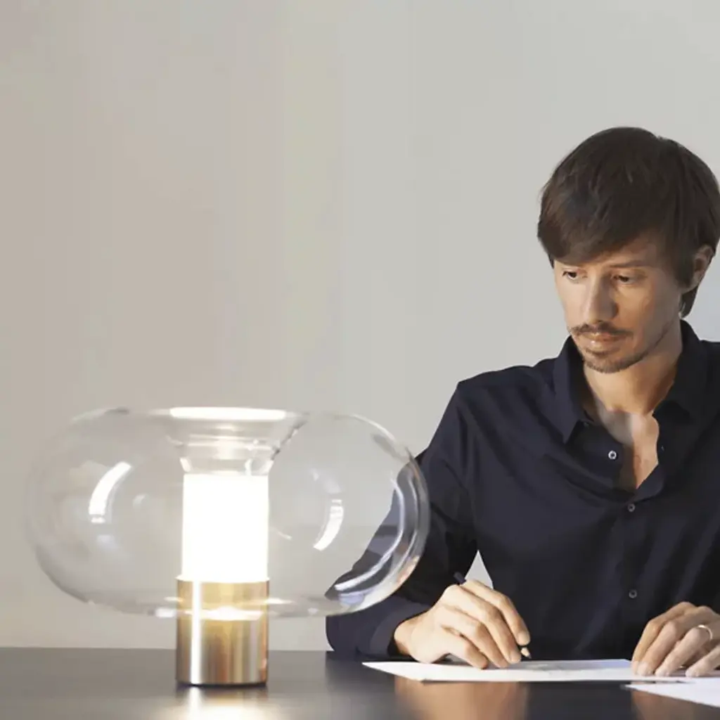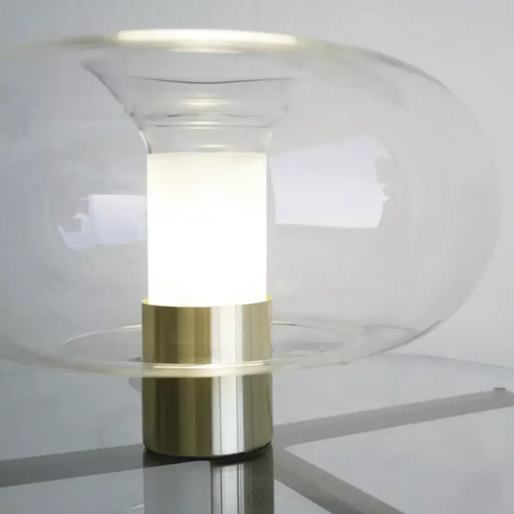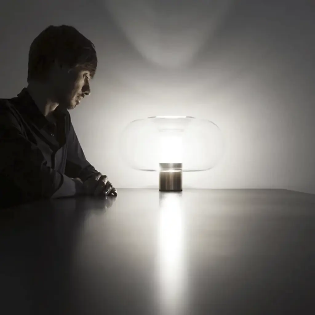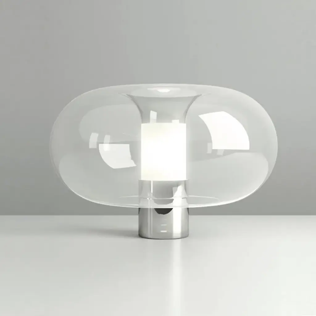 The Fontanella Table Lamp from FontanaArte presents personalized Italian craftsmanship, showing off luminous artistry. Designed by Federico Peri, this contemporary masterpiece marries a rounded shade of crystalline glass with a simple central structure of galvanized metal. Skilled artisans meticulously unite a sandblasted inner tube set around the lamping with a bubble-shaped exterior of blown glass, creating an ethereal fusion of transparent and satin finishes. Each handcrafted piece shows the refinement of Italian glassworking expertise, transforming direct light into a sophisticated ambiance.