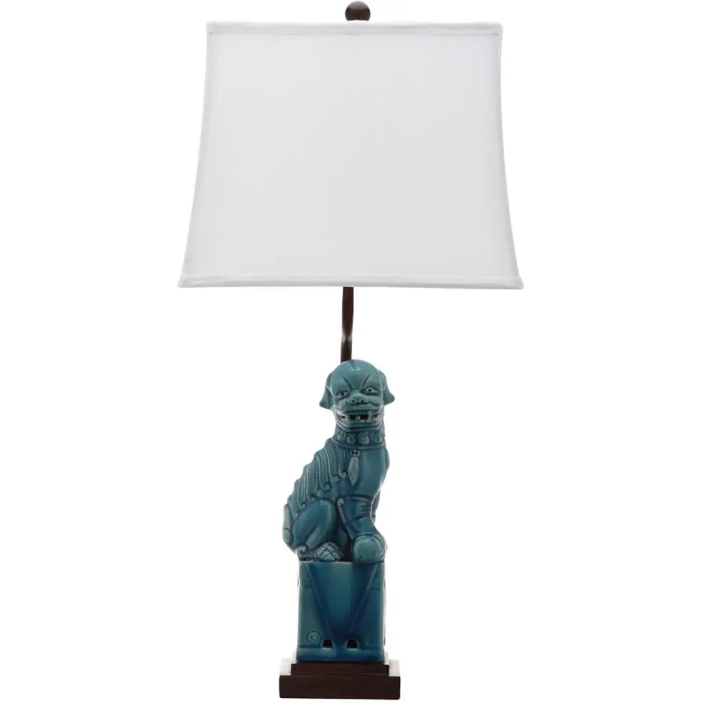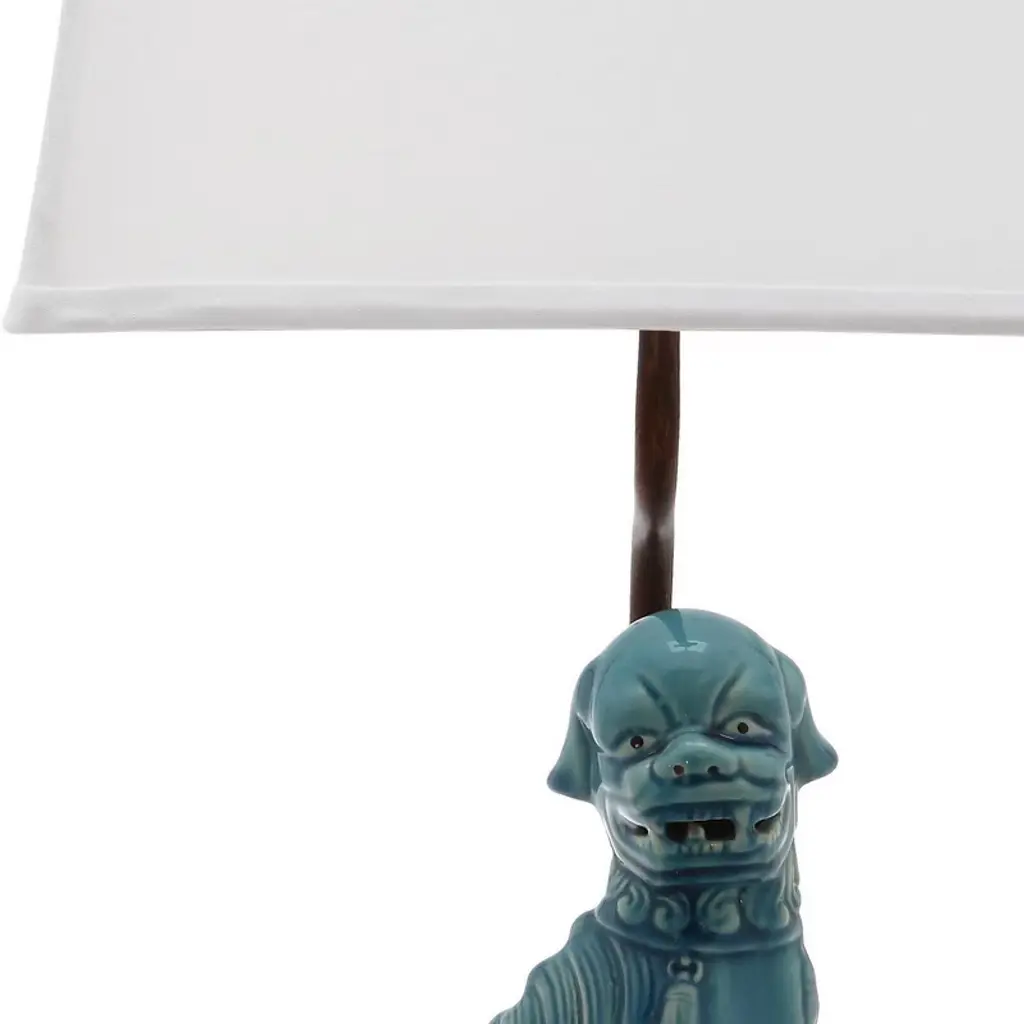 Illuminate your space with our striking Foo Dog lamp set. Standing 28.5 inches tall, this pair of blue ceramic and polyresin lamps brings a touch of elegance to any room. The vibrant blue hue adds a pop of color, perfectly complementing both modern and classic decor. Each lamp features a detaiLED foo dog design that radiates charm and sophistication, serving as a captivating focal point in your home. Ideal for living rooms, bedrooms, or offices, these lamps provide both style and functionality. Let their warm glow transform your environment and enhance your interior with artistic flair.