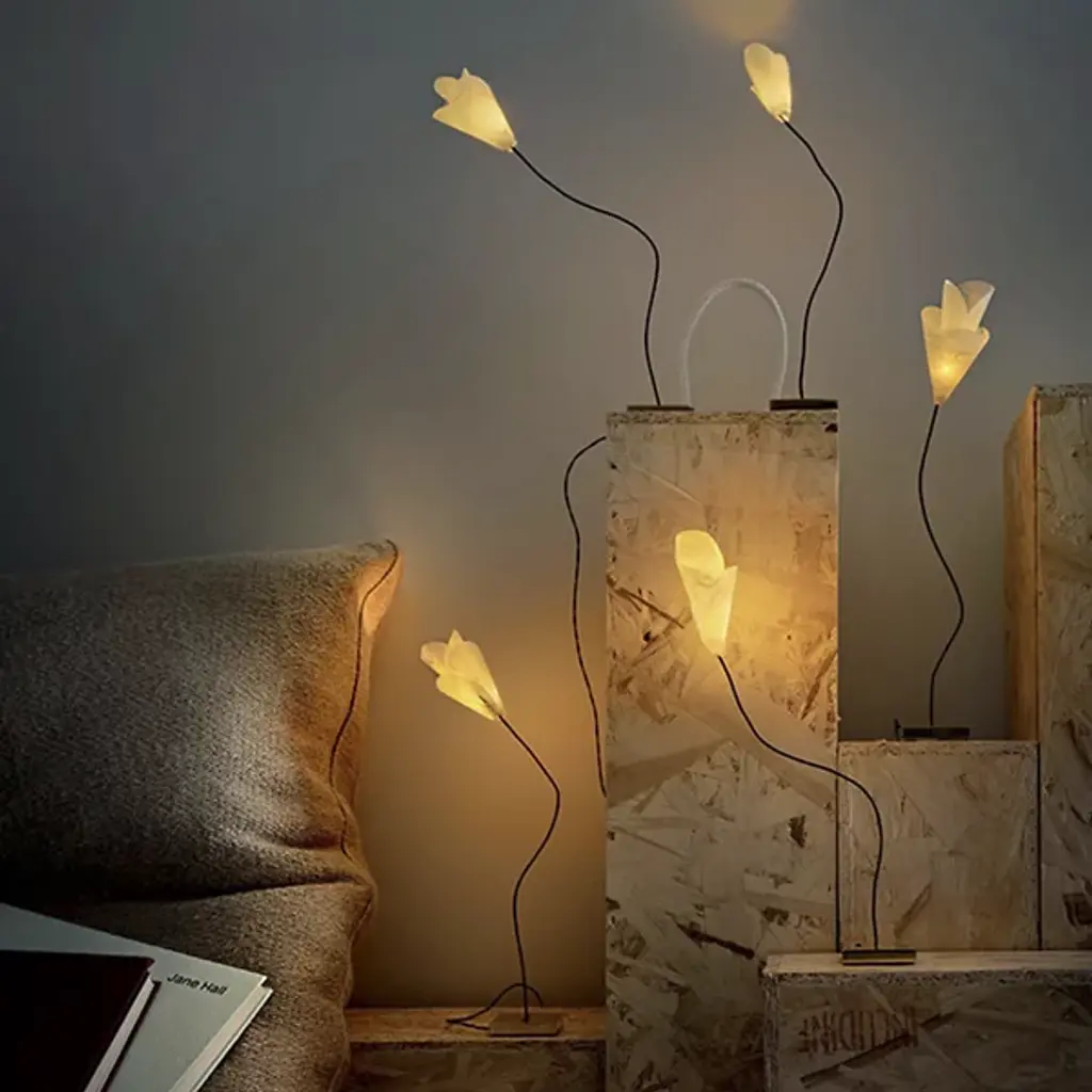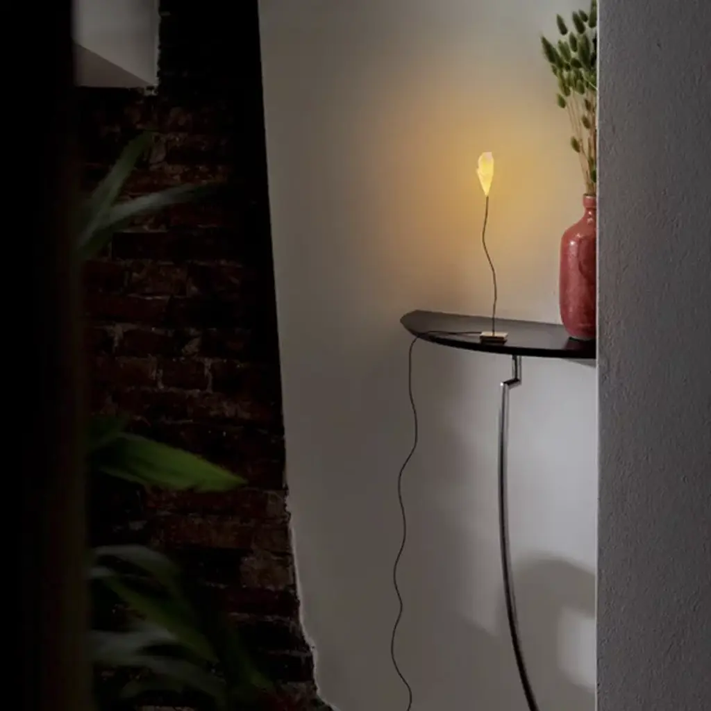 The For You LED USB Table Lamp from Catellani & Smith brings an understated, beautiful, and loving presence to any room it adorns. Inspired by the natural lightness of a wildflower, this product features a small brass base, a slender blue fabric-wrapped stem, and rice paper petals. The petals--which are easily replaced--contain a dedicated LED board that fills the room with amber-colored light. With an integrated push-dimmer, this product provides the perfect amount of illumination for you.