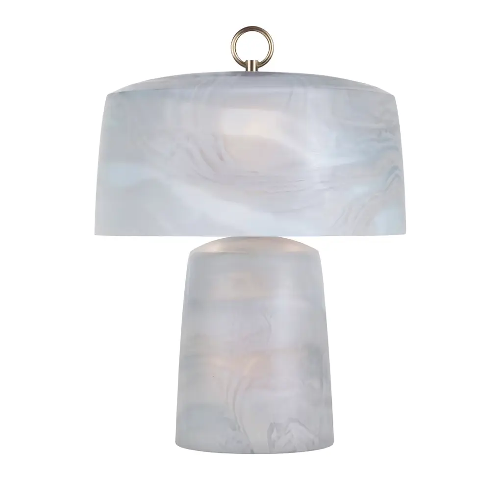 Petite and playful, the Fords table lamp adds charm to smaller spaces like bookshelves. Its cloud-like, seeded glass construction provides soft diffusion of the rechargeable LED. The Aged Brass base cuff and finial add a refined finishing touch to the all-glass materiality. Fords is ideal for those seeking a versatile accent piece with a touch of modern whimsy.