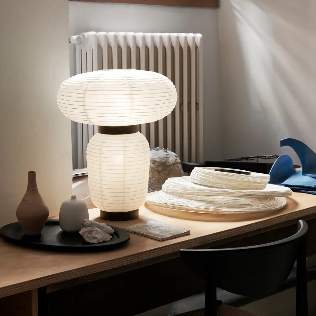Introducing the JH18 Lamp by Jaime Hayon for &tradition, a reinvention of the time-honored lantern, in a refreshingly new and distinct aesthetic. This exquisite piece goes beyond mere function to become a beacon of style and elegance. The JH18 is meticulously handcrafted from rice paper, embracing a variety of forms and dimensions in perfect harmony. The collection comprises a stunning trio of lanterns and a table lamp, each piece resonating with understated simplicity and purity. Rendered in ivory white, the lamps echo serenity and sophistication. Contrasting black stained oak accents punctuate their subtle beauty, yielding a balanced visual appeal. Far from the cultural and color symbolism of traditional lanterns, Hayon’s series encapsulates a design language that’s boldly minimalist, achingly chic, and absolutely unique.