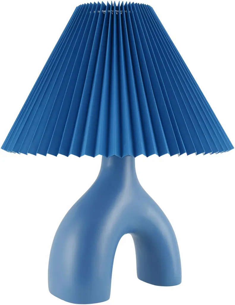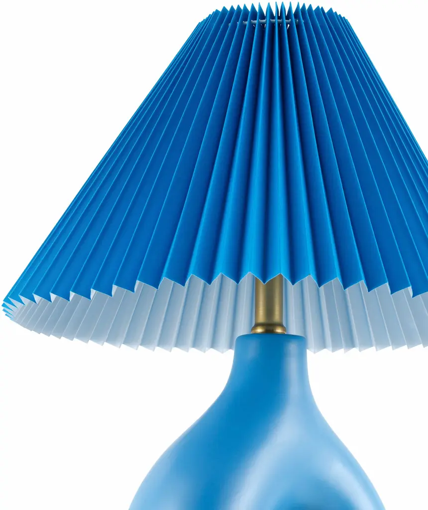 Collection: Fornalutx Colors: Blue, Translucent Material: Body: Ceramic / Shade (Outside): Linen, Linen / Shade (Inside): Linen, Plastic Styles: Contemporary Made In: China Lighting Type: Accent Table Lighting Shade Material: Linen, Plastic Shade Color: Blue Cord Length: 6' Switch Type: 3-Way Number of Bulbs: 1 Socket Type: E-26 Bulb Wattage: 100W