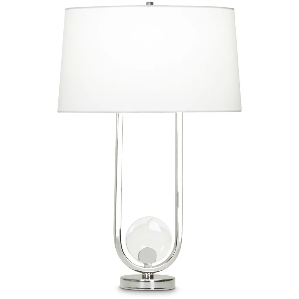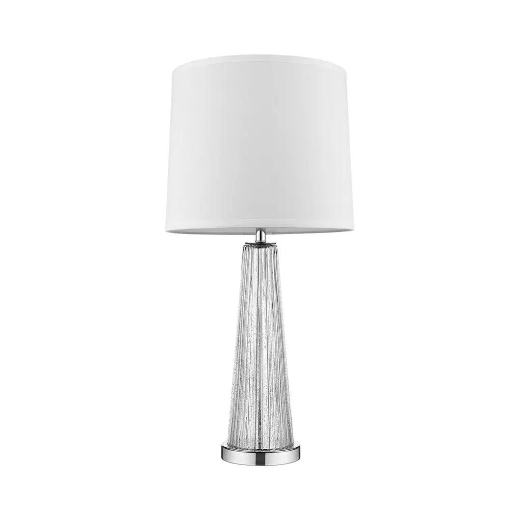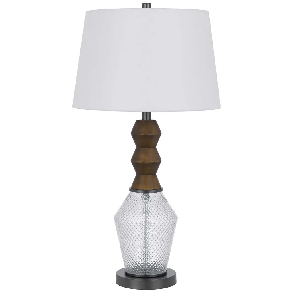 Transform your space with this teardrop style table lamp. It features a clear diamond pattern font which has a functional led night light. This lamp is ships complete with a hardback fabric shade and matching finial.
