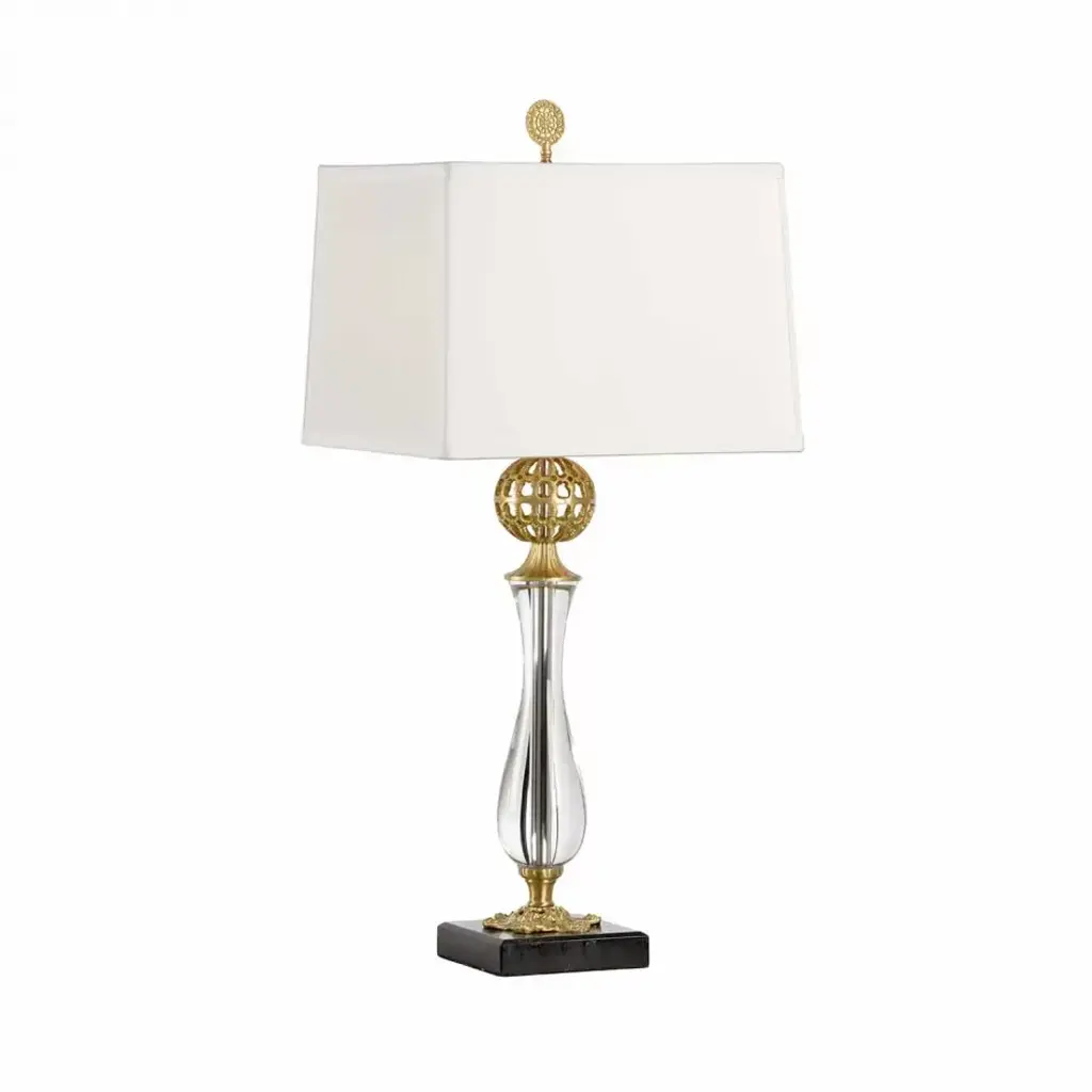 Crystal Column Lamp With Gold Accents. Black Marblized Base. Crystal Column Lamp With Gold Accents Black Marblized Base. 32H